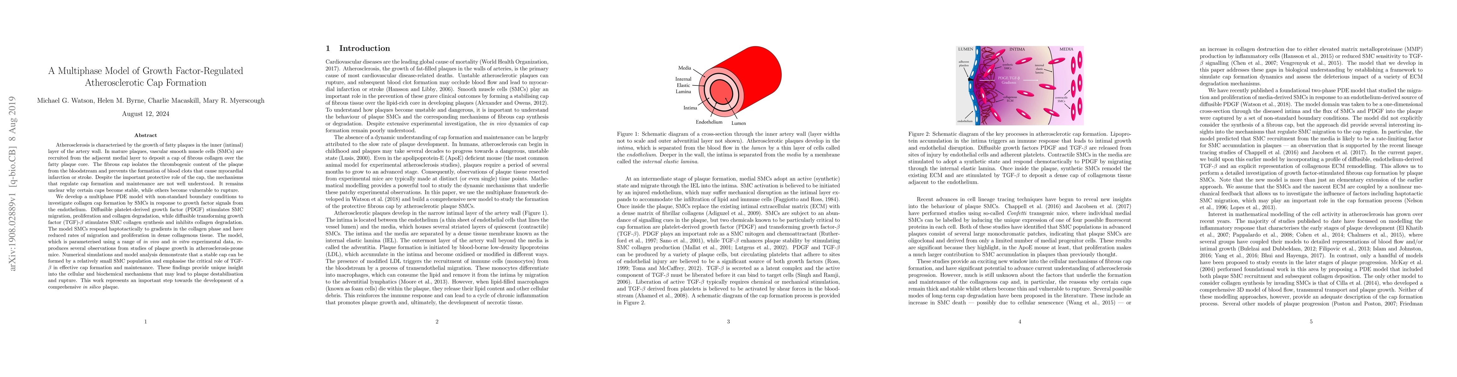 This paper develops a multiphase PDE model to investigate the formation of atherosclerotic fibrous caps regulated by growth factors. The model highlights the critical role of TGF-$\beta$ in cap formation and stability, providing insights into the mechanisms leading to plaque destabilisation and rupture.