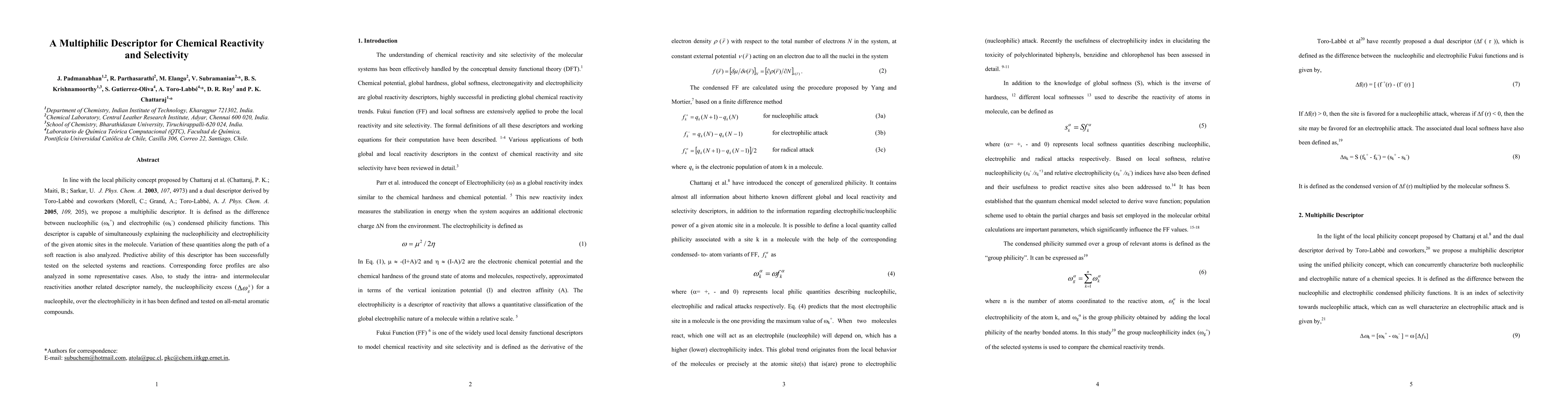 This paper proposes a multiphilic descriptor, defined as the difference between nucleophilic and electrophilic condensed philicity functions, to explain chemical reactivity and selectivity. The descriptor's predictive ability is tested on various systems, and related nucleophilicity excess is analyzed for all-metal aromatic compounds.