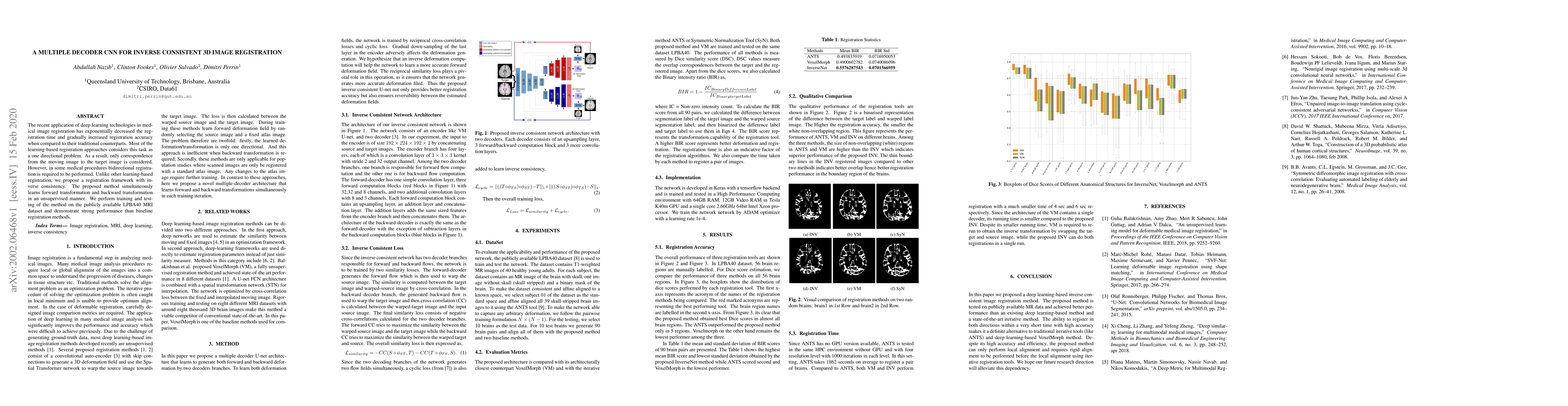 The recent application of deep learning technologies in medical image registration has exponentially decreased the registration time and gradually increased registration accuracy when compared to their traditional counterparts. Most of the learning-based registration approaches considers this task as a one directional problem. As a result, only correspondence from the moving image to the target image is considered. However, in some medical procedures bidirectional registration is required to be performed. Unlike other learning-based registration, we propose a registration framework with inverse consistency. The proposed method simultaneously learns forward transformation and backward transformation in an unsupervised manner. We perform training and testing of the method on the publicly available LPBA40 MRI dataset and demonstrate strong performance than baseline registration methods.