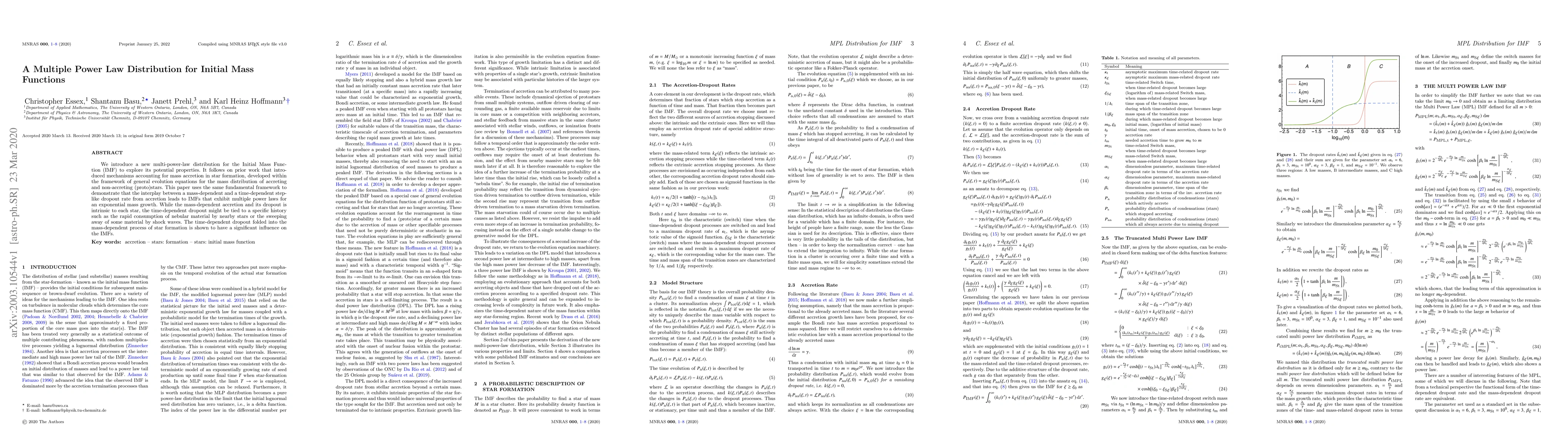 We introduce a new multi-power-law distribution for the Initial Mass Function (IMF) to explore its potential properties. It follows on prior work that introduced mechanisms accounting for mass accretion in star formation, developed within the framework of general evolution equations for the mass distribution of accreting and non-accreting (proto)stars. This paper uses the same fundamental framework to demonstrate that the interplay between a mass-dependent and a time-dependent step-like dropout rate from accretion leads to IMFs that exhibit multiple power laws for an exponential mass growth. While the mass-dependent accretion and its dropout is intrinsic to each star, the time-dependent dropout might be tied to a specific history such as the rapid consumption of nebular material by nearby stars or the sweeping away of some material by shock waves. The time-dependent dropout folded into the mass-dependent process of star formation is shown to have a significant influence on the IMFs.