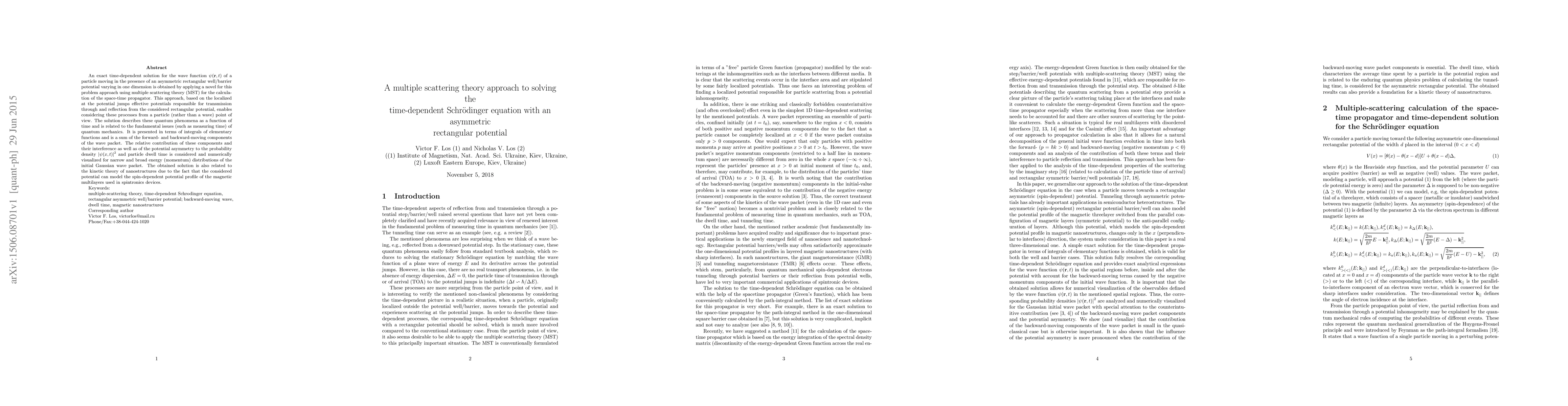 Researchers developed a new approach using multiple scattering theory to solve the time-dependent Schrödinger equation for a particle in an asymmetric rectangular potential, obtaining a precise solution that considers transmission and reflection from a particle's perspective.
