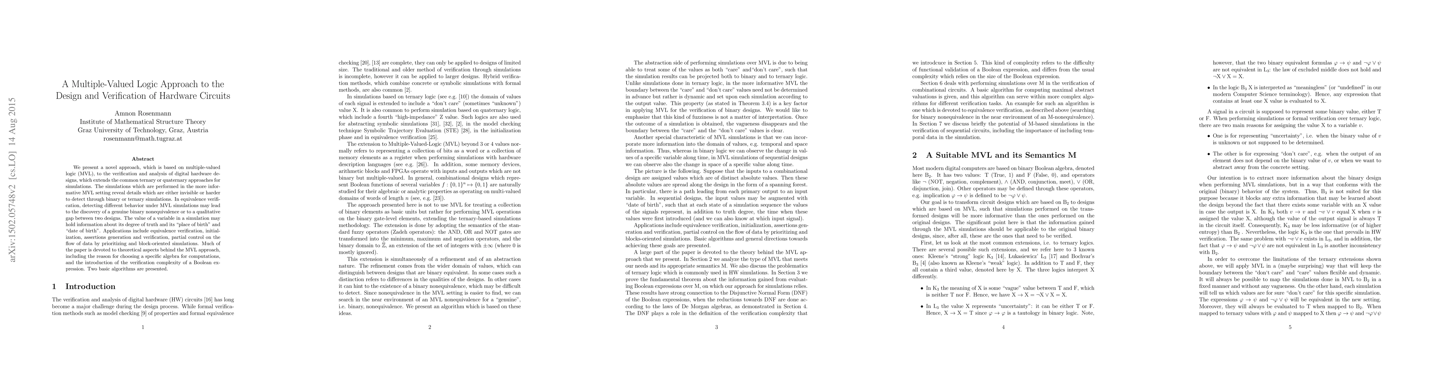 We present a novel approach, which is based on multiple-valued logic (MVL), to the verification and analysis of digital hardware designs, which extends the common ternary or quaternary approaches for simulations. The simulations which are performed in the more informative MVL setting reveal details which are either invisible or harder to detect through binary or ternary simulations. In equivalence verification, detecting different behavior under MVL simulations may lead to the discovery of a genuine binary nonequivalence or to a qualitative gap between two designs. The value of a variable in a simulation may hold information about its degree of truth and its "place of birth" and "date of birth." Applications include equivalence verification, initialization, assertions generation and verification, partial control on the flow of data by prioritizing and block-oriented simulations. Much of the paper is devoted to theoretical aspects behind the MVL approach, including the reason for choosing a specific algebra for computations, and the introduction of the verification complexity of a Boolean expression. Two basic algorithms are presented.