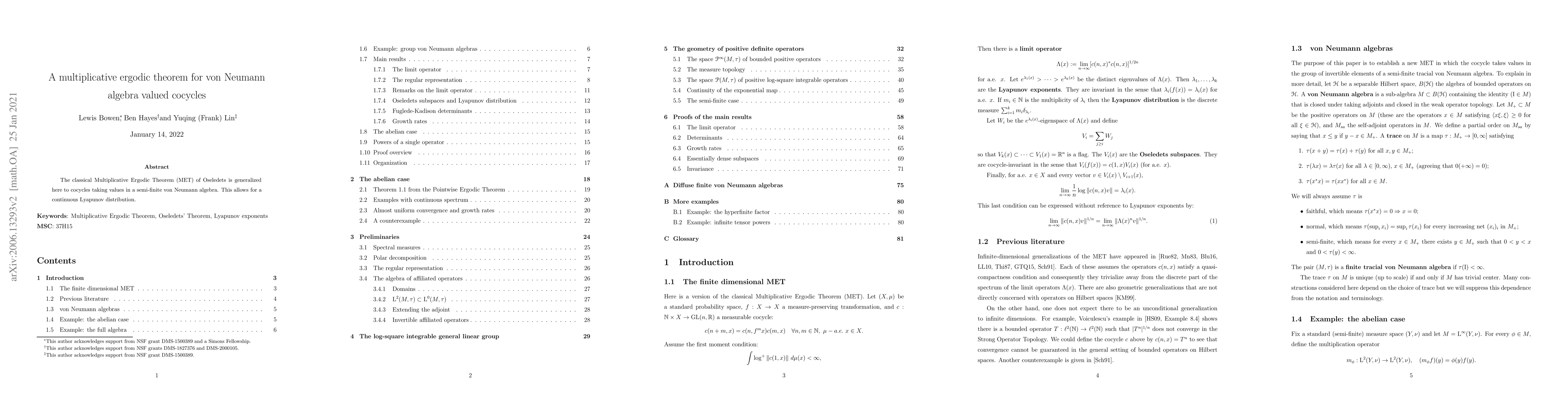 The paper generalizes the classical Multiplicative Ergodic Theorem to cocycles valued in semi-finite von Neumann algebras, enabling a continuous Lyapunov distribution. This extension provides a robust framework for analyzing dynamical systems with complex algebraic structures.