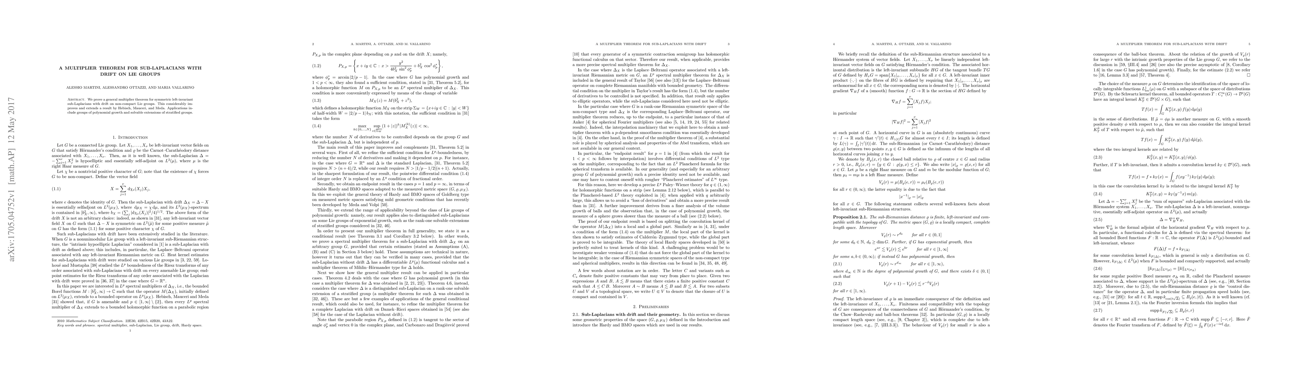 Researchers prove a multiplier theorem for sub-Laplacians with drift on non-compact Lie groups, expanding previous results with applications to polynomial growth groups and solvable stratified groups.