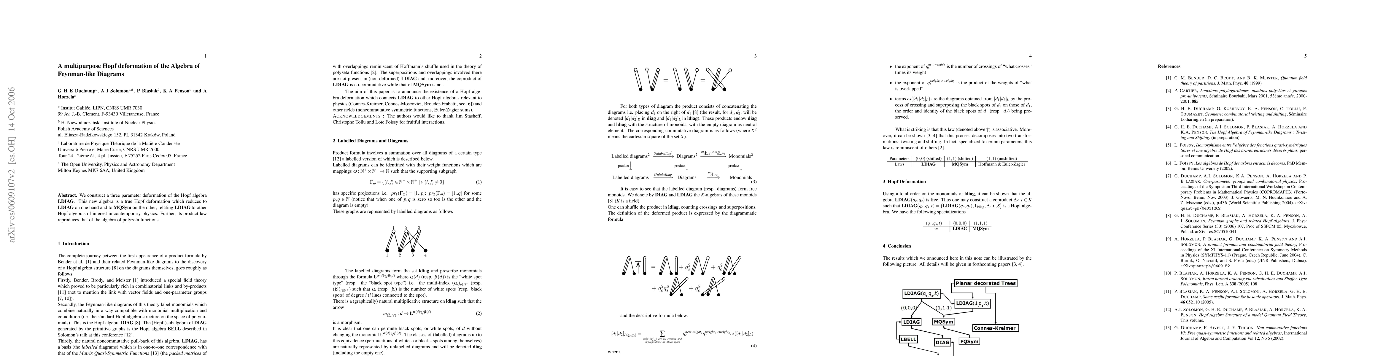 This paper constructs a three-parameter deformation of the Hopf algebra $\mathbf{LDIAG}$, which connects it to $\mathbf{MQSym}$ and the algebra of polyzeta functions, providing a versatile framework in contemporary physics.