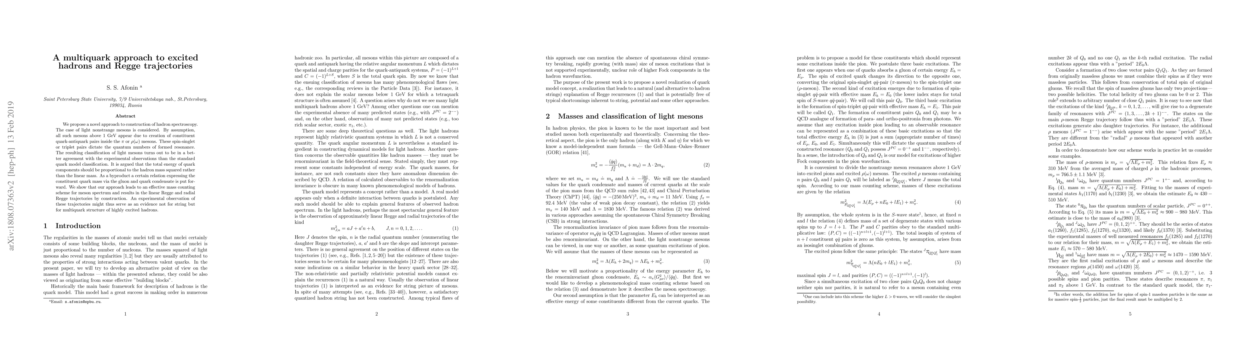 This paper proposes a multiquark approach to hadron spectroscopy, suggesting that excited light nonstrange mesons above 1 GeV arise from quark-antiquark pairs within pi or rho mesons, leading to better agreement with experimental data than the standard quark model. It also introduces a mass counting scheme and predicts linear Regge trajectories as evidence of multiquark structures in highly excited hadrons.