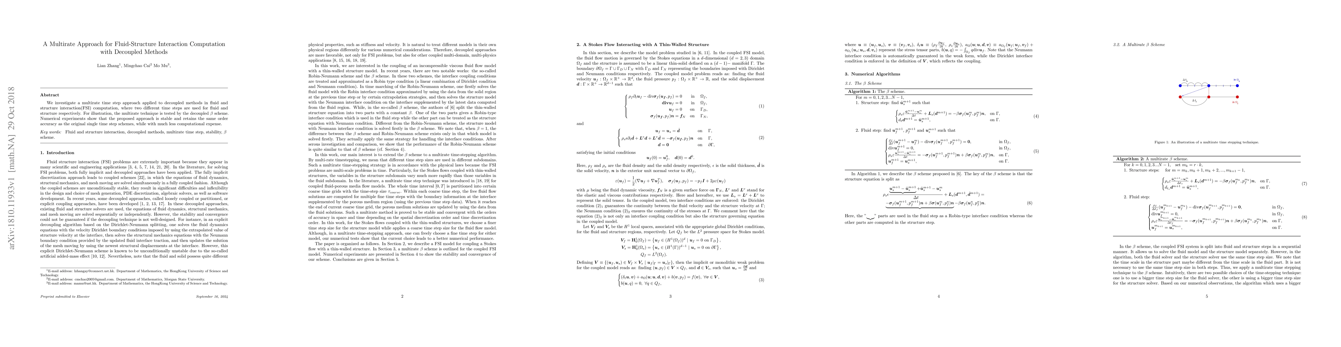 Summary: This paper proposes a multirate time step approach for decoupled fluid-structure interaction (FSI) computations, using different time steps for fluid and structure. The method maintains accuracy while significantly reducing computational costs, as demonstrated by numerical experiments using the decoupled \beta-scheme.