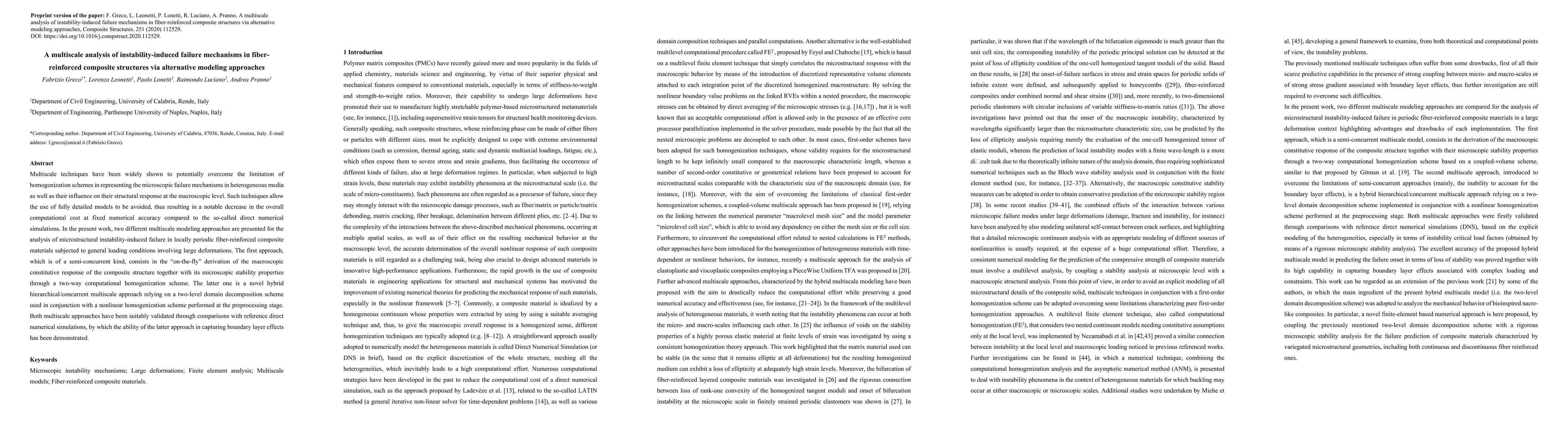 This paper explores two multiscale modeling approaches for analyzing failure mechanisms in fiber-reinforced composite structures under large deformations. The first approach uses a semi-concurrent two-way computational homogenization, while the second employs a hybrid hierarchical-concurrent method with a two-level domain decomposition and nonlinear homogenization. Both methods are validated against direct numerical simulations.