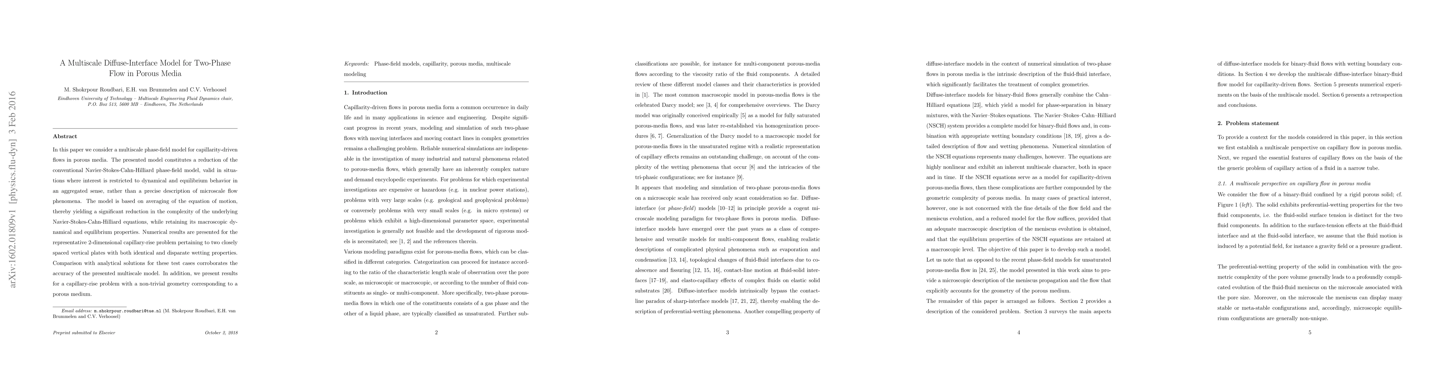 This paper proposes a multiscale diffuse-interface model for capillary-driven flows in porous media, simplifying the Navier-Stokes-Cahn-Hilliard equations while retaining macroscopic properties. Numerical results for capillary-rise problems validate the model's accuracy.