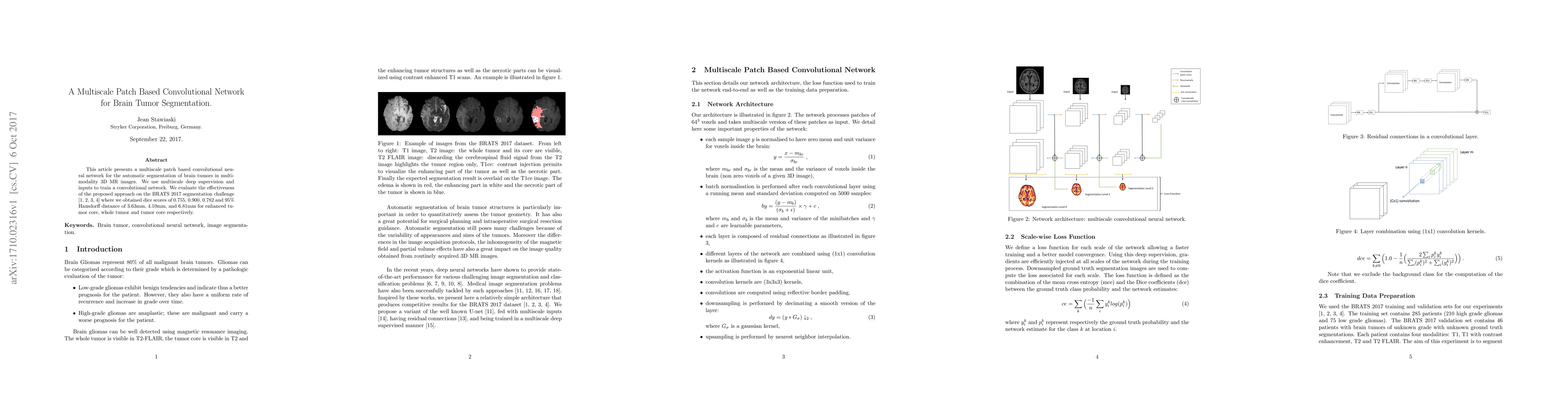 This paper introduces a multiscale patch-based convolutional network for segmenting brain tumors in 3D MR images, utilizing multiscale deep supervision. The method achieved high segmentation accuracy on the BRATS 2017 challenge, with dice scores of 0.755, 0.900, and 0.782 for different tumor regions and Hausdorff distances under 7mm.