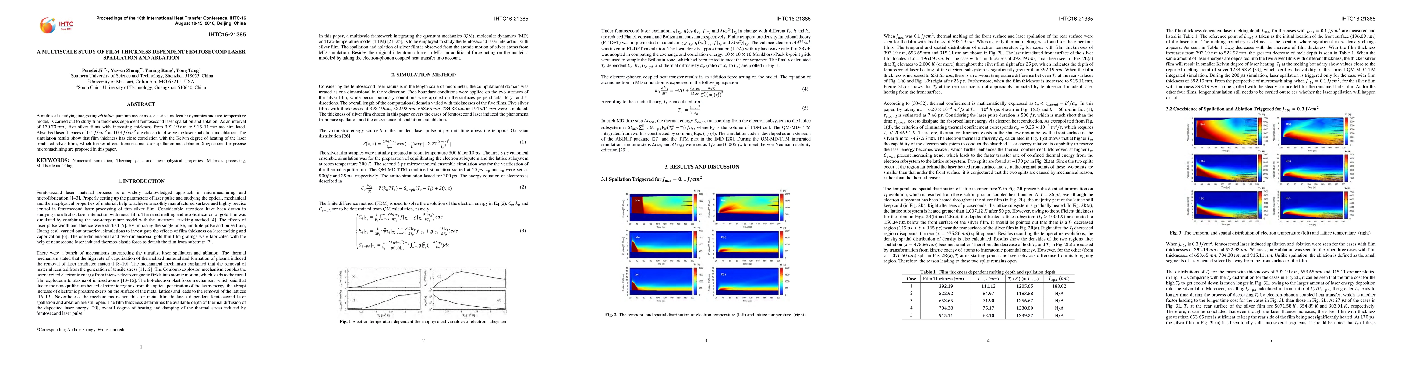 This study combines quantum mechanics, molecular dynamics, and a two-temperature model to investigate how film thickness influences femtosecond laser spallation and ablation in silver films. The results reveal a strong relationship between film thickness and the Kelvin degree of heating, affecting laser spallation and ablation, with implications for precise micromachining techniques.