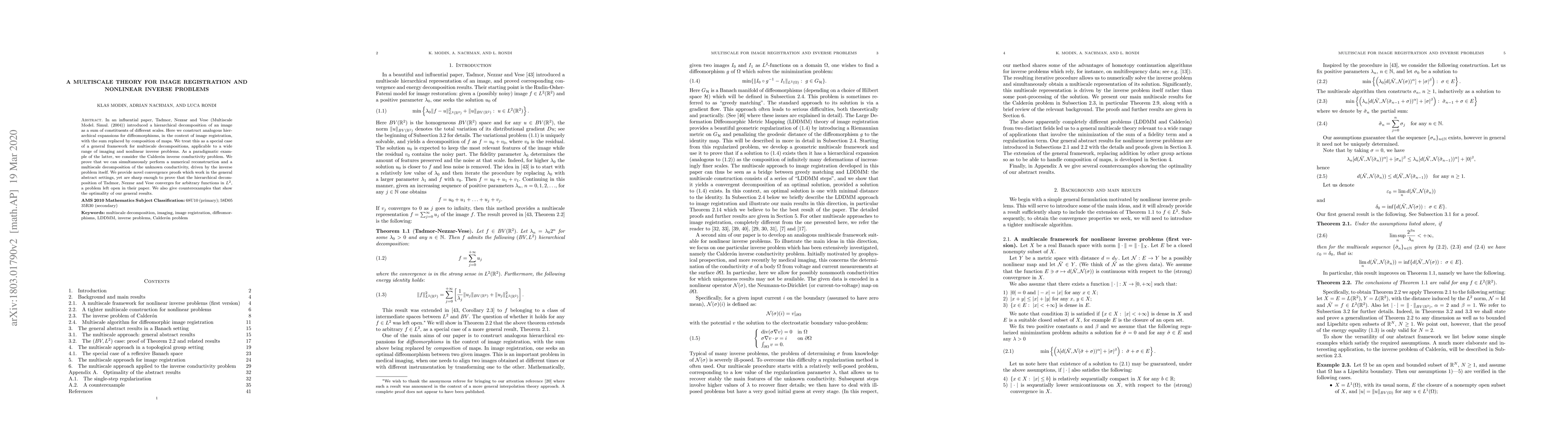 This paper develops a multiscale theory for image registration and nonlinear inverse problems, constructing hierarchical decompositions for diffeomorphisms. It applies this framework to the Calder\'on inverse conductivity problem, proving simultaneous reconstruction and decomposition, and provides sharp convergence proofs for the decomposition of functions in $L^2$.