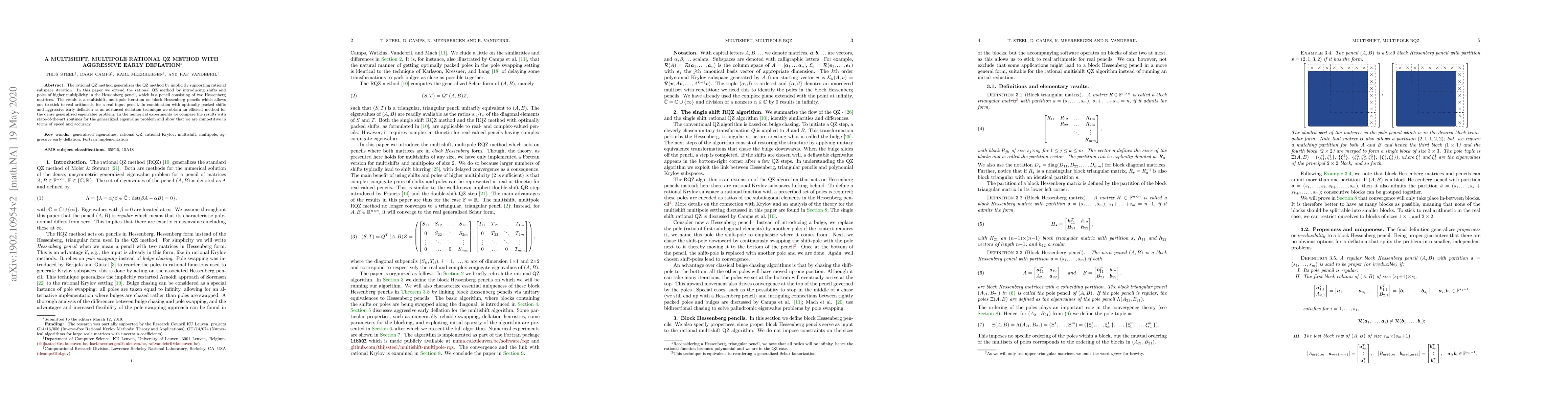 The rational QZ method generalizes the QZ method by implicitly supporting rational subspace iteration. In this paper we extend the rational QZ method by introducing shifts and poles of higher multiplicity in the Hessenberg pencil, which is a pencil consisting of two Hessenberg matrices. The result is a multishift, multipole iteration on block Hessenberg pencils which allows one to stick to real arithmetic for a real input pencil. In combination with optimally packed shifts and aggressive early deflation as an advanced deflation technique we obtain an efficient method for the dense generalized eigenvalue problem. In the numerical experiments we compare the results with state-of-the-art routines for the generalized eigenvalue problem and show that we are competitive in terms of speed and accuracy.