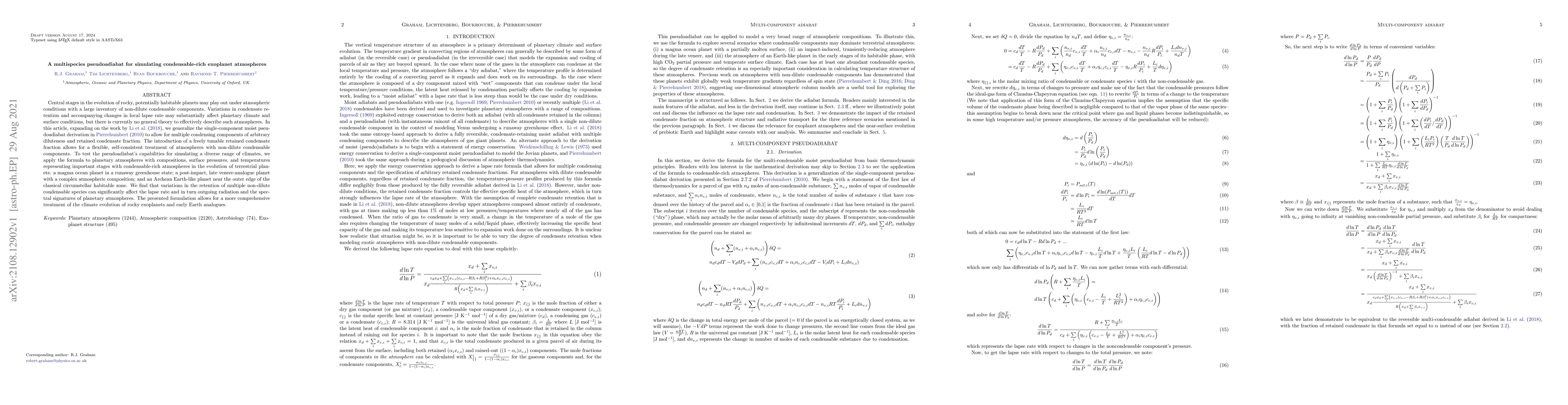 This paper generalizes the single-component moist pseudoadiabat to accommodate multiple condensing components, allowing for a flexible, self-consistent model of condensable-rich exoplanet atmospheres. The new multispecies pseudoadiabat is tested on diverse planetary atmospheres, showing significant impacts of condensate retention on lapse rate, outgoing radiation, and spectral signatures.