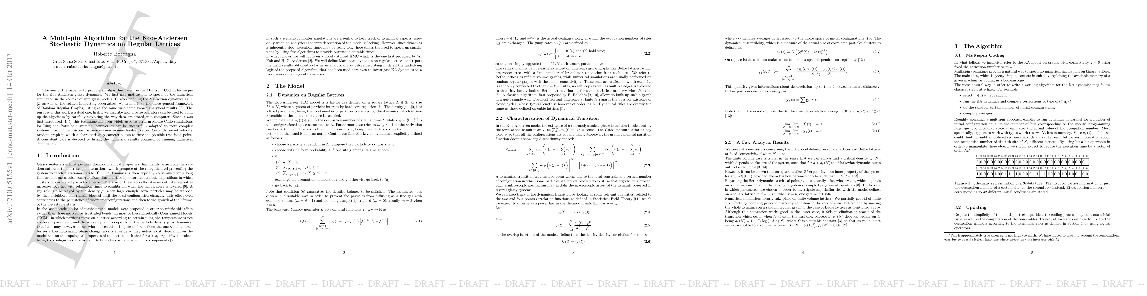 The aim of the paper is to propose an algorithm based on the Multispin Coding technique for the Kob-Andersen glassy dynamics. We first give motivations to speed up the numerical simulation in the context of spin glass models [M. Mezard, G. Parisi, M. Virasoro, Spin Glass Theory and Beyond (World Scientific, Singapore, 1987)], after defining the Markovian dynamics as in [W. Kob, H.C. Andersen, Phys. Rev. E 48, 4364 (1993)] as well as the related interesting observables, we extend it to the more general framework of random regular graphs, listing at the same time some known analytical results [C. Toninelli, G. Biroli, D.S. Fisher, J. Stat. Phys. 120, 167 (2005)]. The purpose of this work is a dual one, firstly, we describe how bitwise operators can be used to build up the algorithm by carefully exploiting the way data are stored on a computer. Since it was first introduced [M. Creutz, L. Jacobs, C. Rebbi, Phys. Rev. D 20, 1915 (1979), C. Rebbi, R.H. Swendsen, Phys. Rev. D 21, 4094 (1980)], this technique has been widely used to perform Monte Carlo simulations for Ising and Potts spin systems, however, it can be successfully adapted to more complex systems in which microscopic parameters may assume boolean values. Secondly, we introduce a random graph in which a characteristic para- meter allows to tune the possible transition point. A consistent part is devoted to listing the numerical results obtained by running numerical simulations.