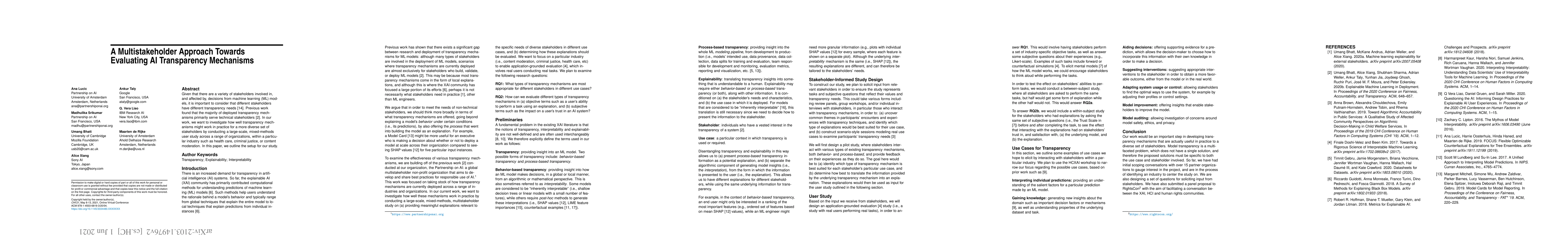 Given that there are a variety of stakeholders involved in, and affected by, decisions from machine learning (ML) models, it is important to consider that different stakeholders have different transparency needs. Previous work found that the majority of deployed transparency mechanisms primarily serve technical stakeholders. In our work, we want to investigate how well transparency mechanisms might work in practice for a more diverse set of stakeholders by conducting a large-scale, mixed-methods user study across a range of organizations, within a particular industry such as health care, criminal justice, or content moderation. In this paper, we outline the setup for our study.