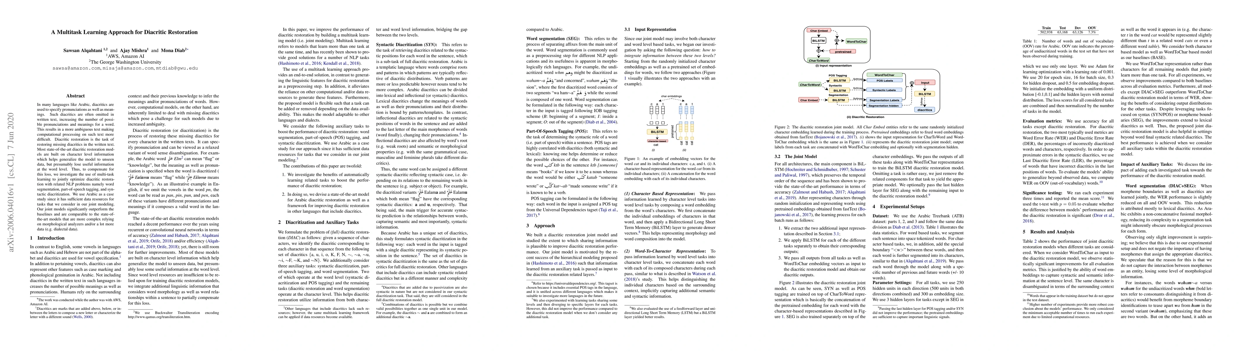This paper explores a multi-task learning approach to restore diacritics in Arabic text, integrating diacritic restoration with word segmentation, part-of-speech tagging, and syntactic diacritization to outperform baselines and compete with more complex state-of-the-art models.