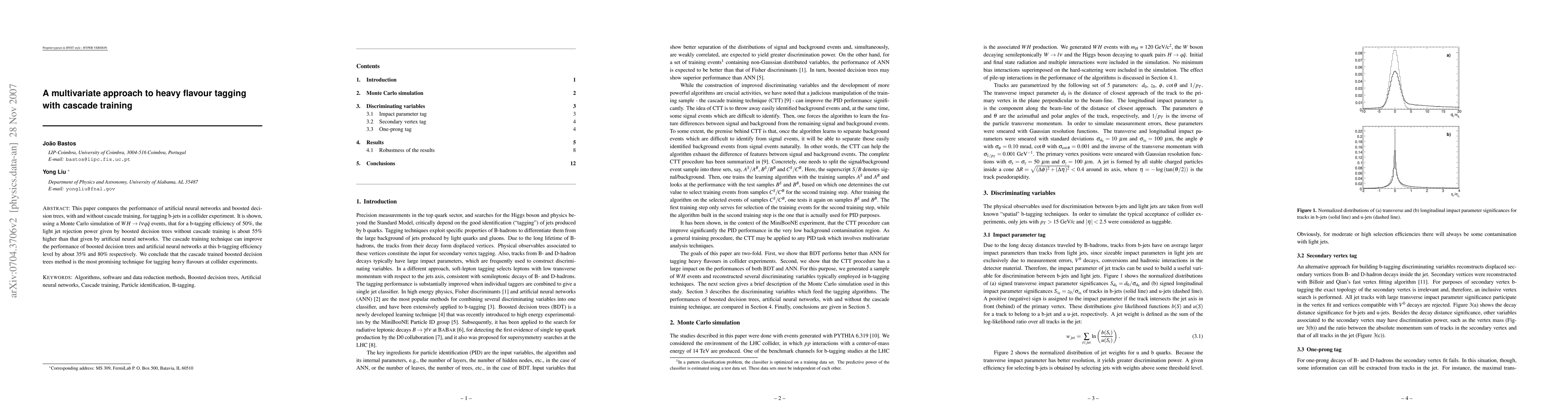 This paper evaluates the effectiveness of artificial neural networks and boosted decision trees, with and without cascade training, for tagging b-jets in collider experiments. Cascade training significantly enhances the performance of both methods, with boosted decision trees showing the greatest improvement in light jet rejection.