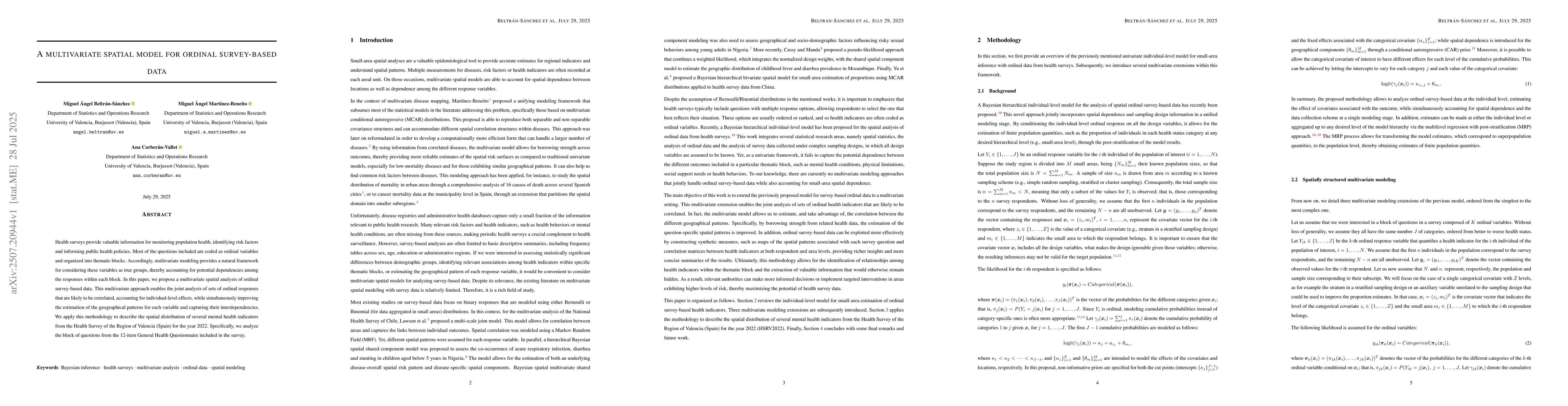 The paper introduces a multivariate extension of a Bayesian individual-level methodology for analyzing spatial ordinal data from health surveys, accounting for both spatial correlation and individual respondent variability.