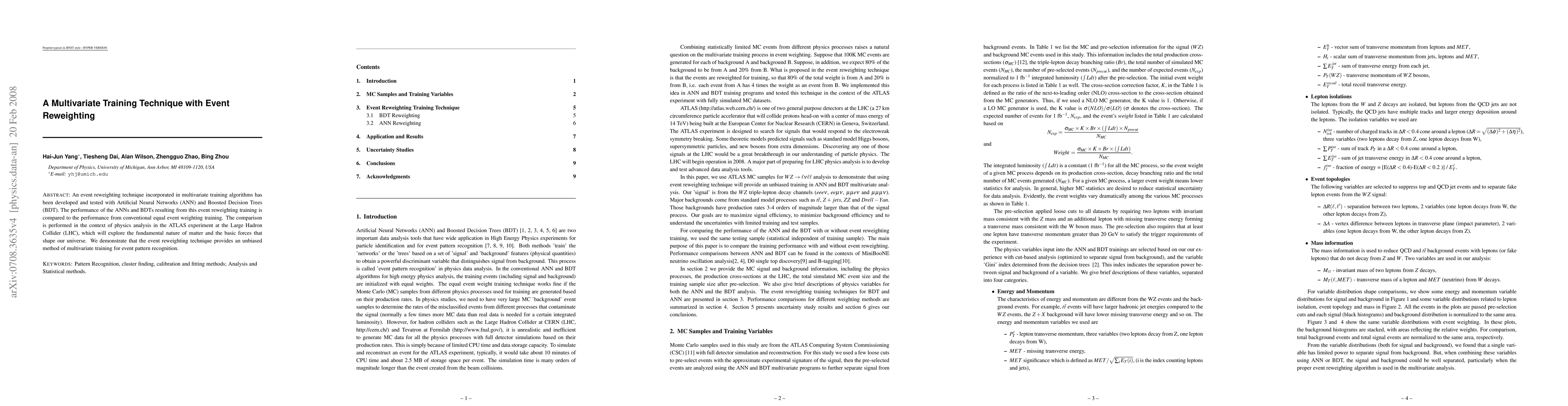 A new multivariate training technique using event reweighting improves performance in machine learning tasks, particularly in physics analysis at the Large Hadron Collider.