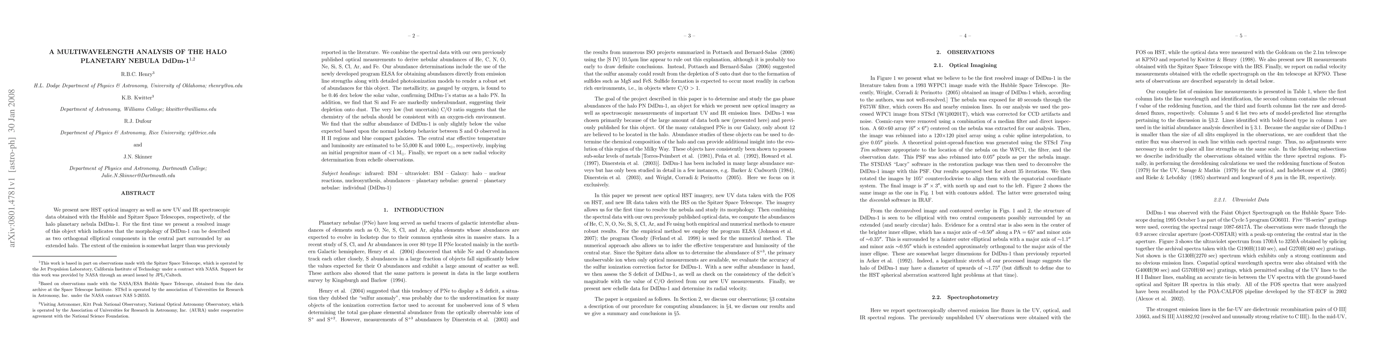 Astronomers analyzed a halo planetary nebula called DdDm-1 using new Hubble and Spitzer Space Telescope data, revealing two elliptical components with an extended halo, and found it has a metallicity 0.46 dex below solar value.