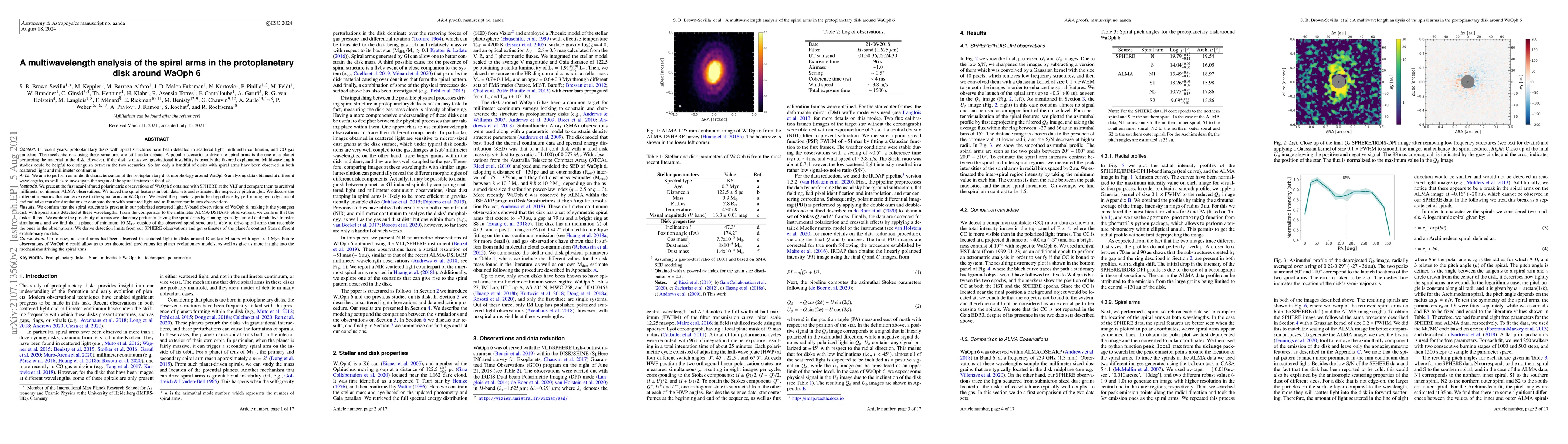 Researchers studied the spiral arms in a protoplanetary disk around WaOph 6 using multiple wavelengths, comparing observations of millimeter continuum and scattered light to investigate the origin of spiral features.