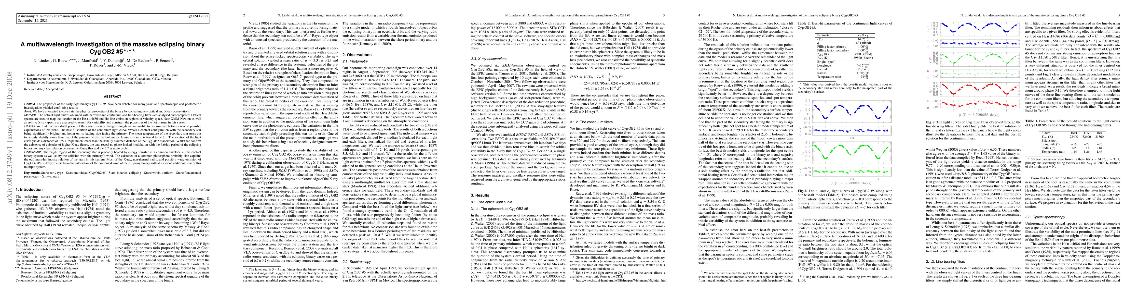 Astronomers studied the massive eclipsing binary Cyg OB2 #5, finding a contact configuration with the secondary star being brighter and hotter on its leading side, and most of its X-ray emission likely coming from interactions between its wind and other stars in the system.