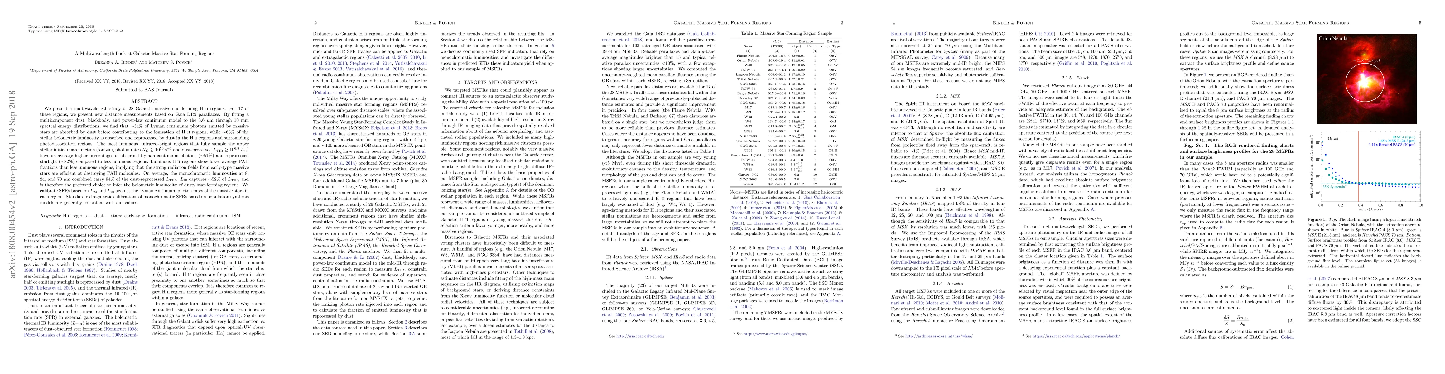 We present a multiwavelength study of 28 Galactic massive star-forming H II regions. For 17 of these regions, we present new distance measurements based on Gaia DR2 parallaxes. By fitting a multicomponent dust, blackbody, and power-law continuum model to the 3.6 $\mu$m through 10 mm spectral energy distributions, we find that ${\sim}34$% of Lyman continuum photons emitted by massive stars are absorbed by dust before contributing to the ionization of H II regions, while ${\sim}68$% of the stellar bolometric luminosity is absorbed and reprocessed by dust in the H II regions and surrounding photodissociation regions. The most luminous, infrared-bright regions that fully sample the upper stellar initial mass function (ionizing photon rates $N_C \ge 10^{50}~{\rm s}^{-1}$ and dust-processed $L_{\rm TIR}\ge 10^{6.8}$ L$_{\odot}$) have on average higher percentages of absorbed Lyman continuum photons ($\sim$51%) and reprocessed starlight ($\sim$82%) compared to less luminous regions. Luminous H II regions show lower average PAH fractions than less luminous regions, implying that the strong radiation fields from early-type massive stars are efficient at destroying PAH molecules. On average, the monochromatic luminosities at 8, 24, and 70 $\mu$m combined carry 94% of the dust-reprocessed $L_{\rm TIR}$. $L_{70}$ captures ${\sim}52$% of $L_{\rm TIR}$, and is therefore the preferred choice to infer the bolometric luminosity of dusty star-forming regions. We calibrate SFRs based on $L_{24}$ and $L_{70}$ against the Lyman continuum photon rates of the massive stars in each region. Standard extragalactic calibrations of monochromatic SFRs based on population synthesis models are generally consistent with our values.