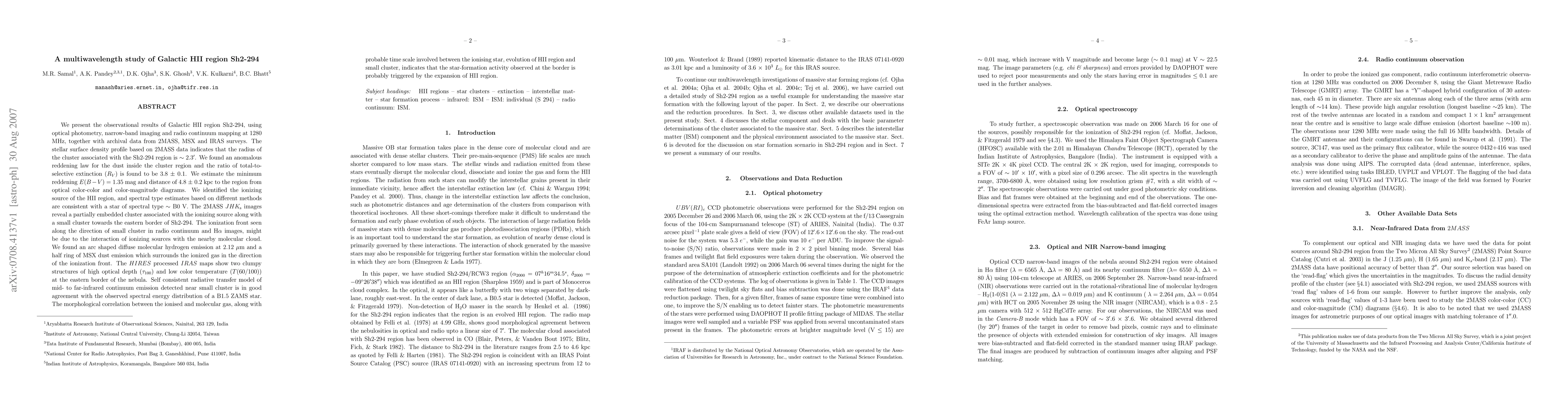 This study of Galactic HII region Sh2-294 combines optical, infrared, and radio observations to determine its properties. The researchers identify a B0 V star as the ionizing source, discover a partially embedded cluster near the ionizing source, and note an ionization front likely caused by the star's interaction with a nearby molecular cloud. They also observe correlated morphology between ionized and molecular gas, suggesting that star formation at the border is potentially triggered by the HII region's expansion.