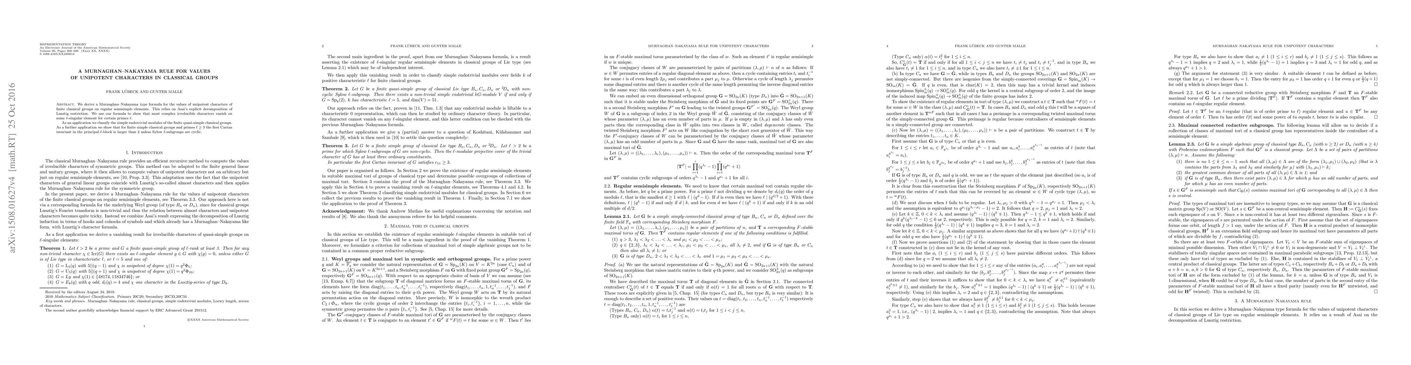 We derive a Murnaghan--Nakayama type formula for the values of unipotent characters of finite classical groups on regular semisimple elements. This relies on Asai's explicit decomposition of Lusztig restriction. We use our formula to show that most complex irreducible characters vanish on some $\ell$-singular element for certain primes $\ell$. As an application we classify the simple endotrivial modules of the finite quasi-simple classical groups. As a further application we show that for finite simple classical groups and primes $\ell\ge3$ the first Cartan invariant in the principal $\ell$-block is larger than~2 unless Sylow $\ell$-subgroups are cyclic.