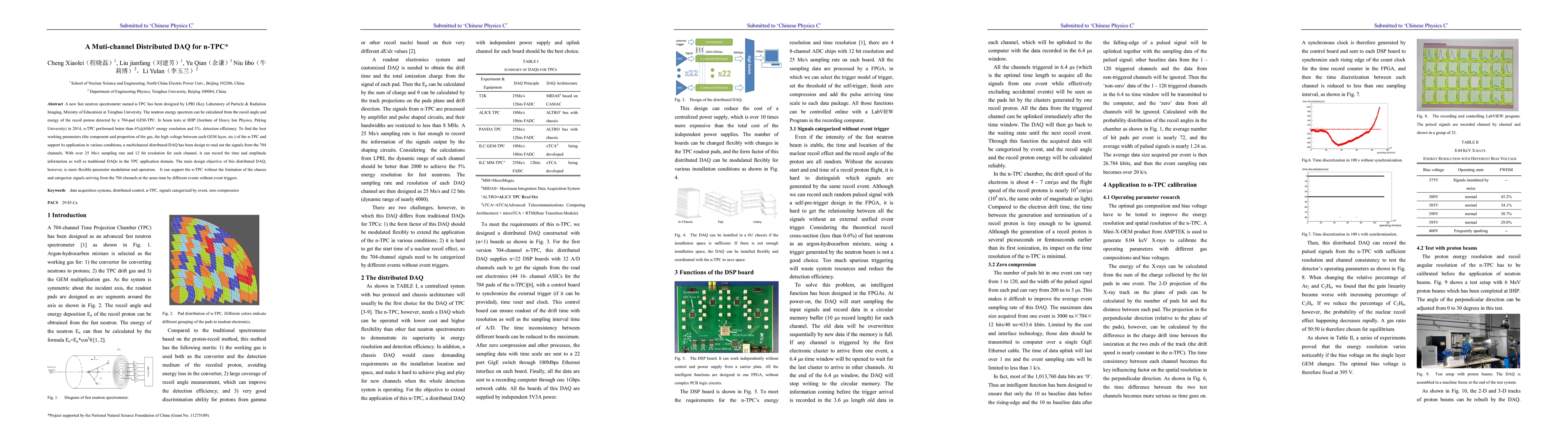 The paper presents a multi-channel distributed Data Acquisition System (DAQ) for a novel neutron spectrometer, n-TPC. This DAQ offers a high sampling rate and resolution to capture neutron energy spectra, crucial for n-TPC's performance improvement in detecting fast neutrons with 6% energy resolution and 0.5% efficiency. Its flexibility allows for unrestricted parameter adjustment and simultaneous event signal categorization without traditional event triggers.