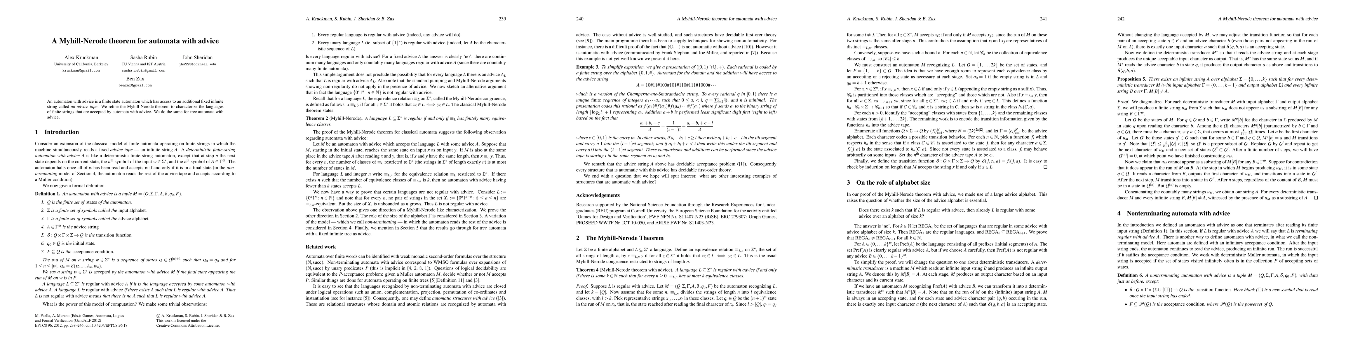 The paper refines the Myhill-Nerode theorem to characterize languages accepted by automata with advice and extends this to tree automata with advice, introducing a framework where finite state machines utilize an additional advice tape.