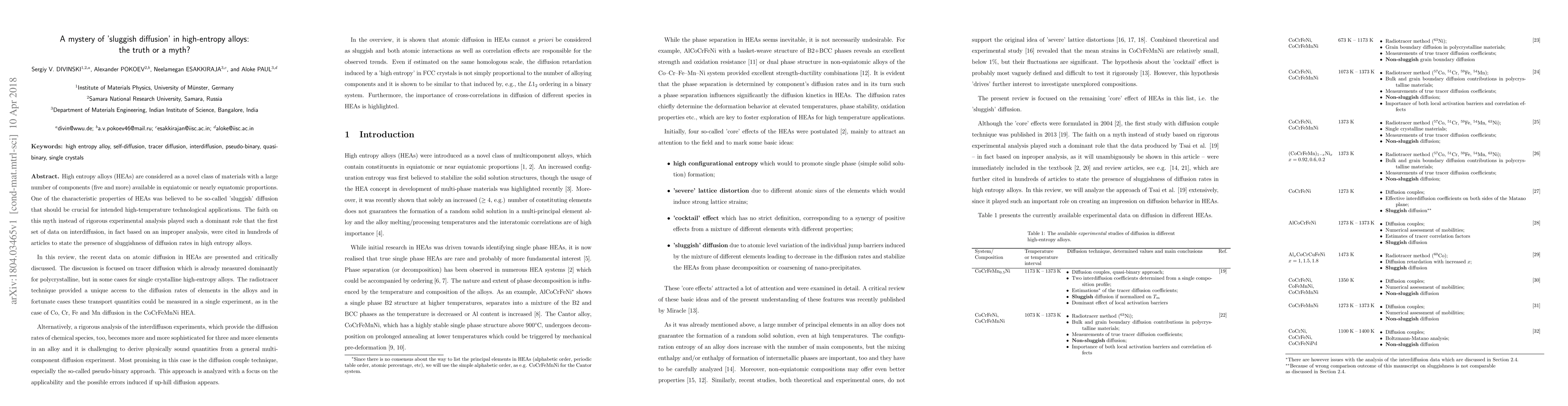This paper critically examines the notion of "sluggish diffusion" in high-entropy alloys (HEAs), revealing that previous assumptions were based on flawed data. It emphasizes that atomic diffusion in HEAs is not inherently sluggish and that diffusion rates are influenced by atomic interactions and correlation effects rather than the number of alloying components.