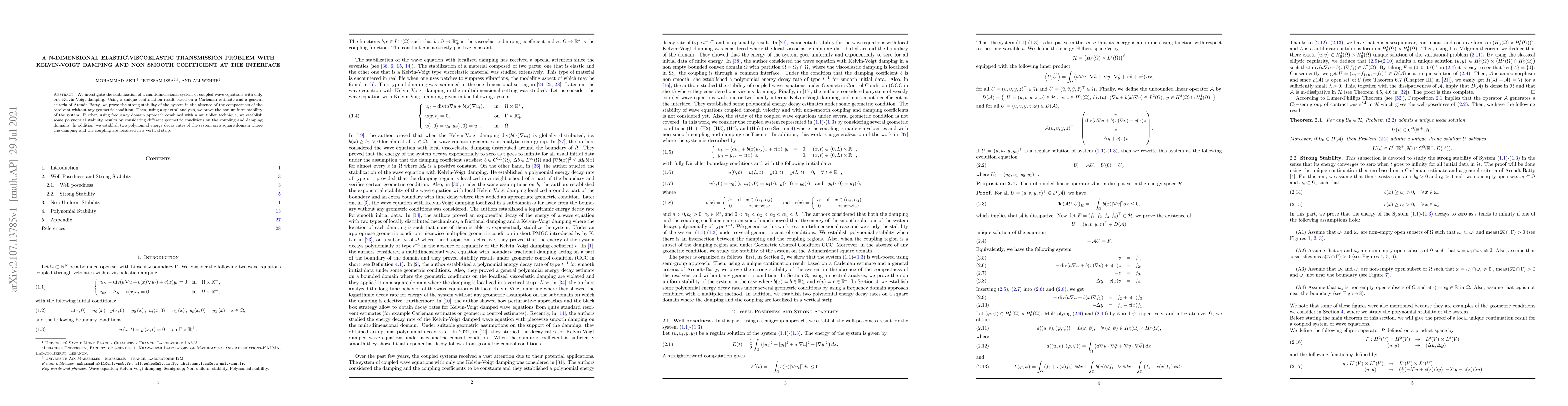 This paper investigates the stabilization of a multi-dimensional wave system with Kelvin-Voigt damping, proving strong stability via Carleman estimates and Arendt-Batty criteria. It also establishes non-uniform stability and polynomial decay rates under various geometric conditions, particularly focusing on localized damping and coupling in a vertical strip.