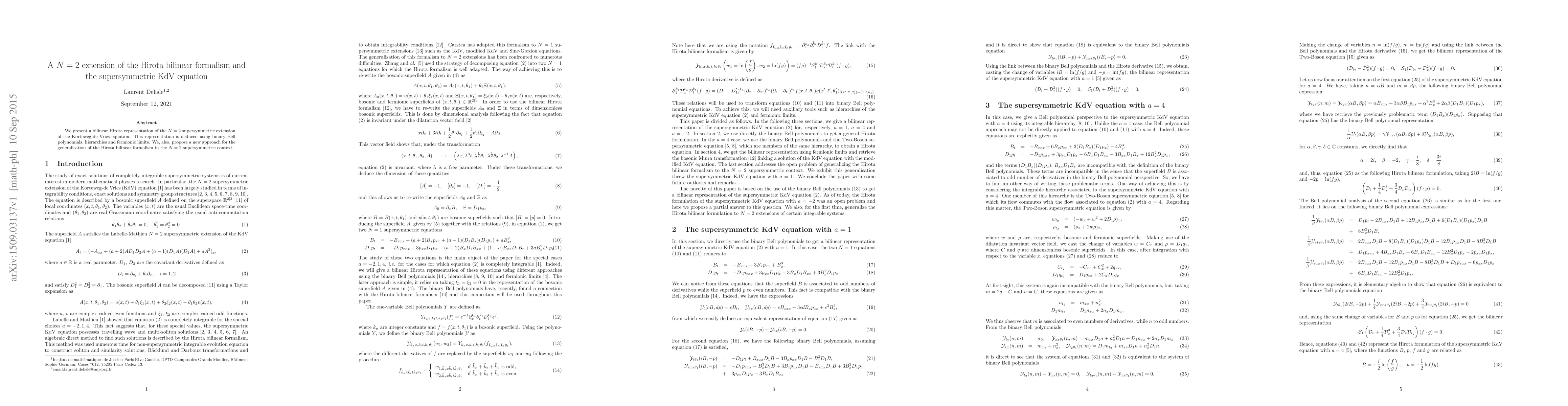 We present a bilinear Hirota representation of the N=2 supersymmetric extension of the Korteweg-de Vries equation. This representation is deduced using binary Bell polynomials, hierarchies and fermionic limits. We, also, propose a new approach for the generalisation of the Hirota bilinear formalism in the N=2 supersymmetric context.