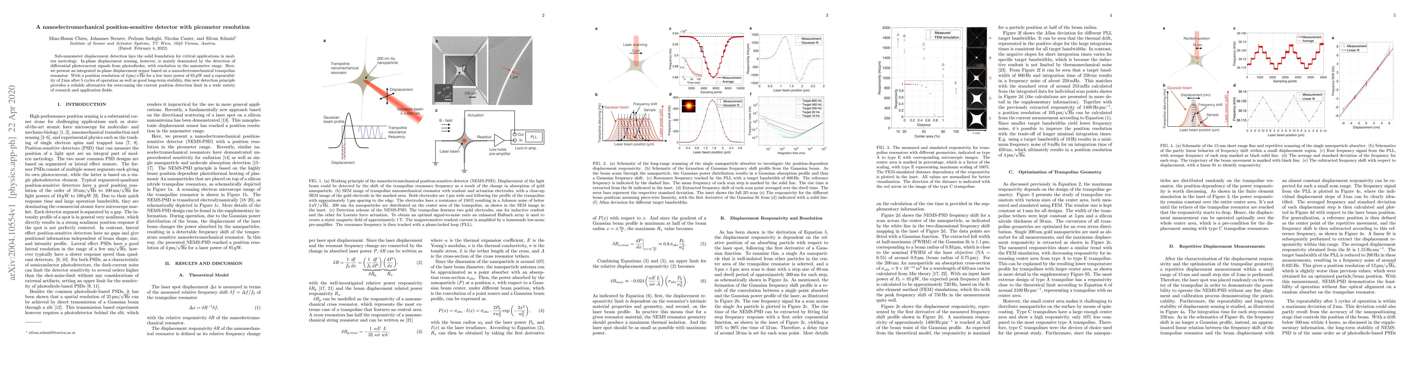 Sub-nanometer displacement detection lays the solid foundation for critical applications in modern metrology. In-plane displacement sensing, however, is mainly dominated by the detection of differential photocurrent signals from photodiodes, with resolution in the nanometer range. Here, we present an integrated in-plane displacement sensor based on a nanoelectromechanical trampoline resonator. With a position resolution of 4 $pm/Hz^{1/2}$ for a low laser power of 85 $\mu$W and a repeatability of 2 nm after 5 cycles of operation as well as good long-term stability, this new detection principle provides a reliable alternative for overcoming the current position detection limit in a wide variety of research and application fields.