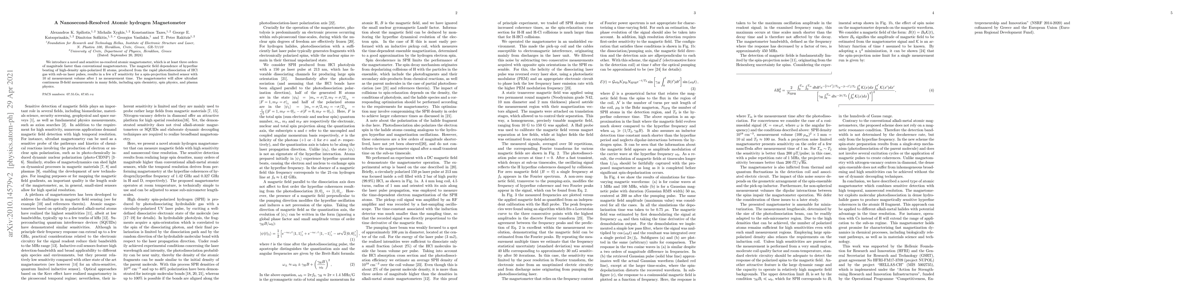 This paper introduces a new atomic magnetometer that leverages hyperfine coherences of spin-polarized hydrogen atoms from photodissociated HCl, achieving high sensitivity and nanosecond-resolution magnetic field detection down to 1 nT. This innovative approach significantly expands measurement bandwidth compared to conventional magnetometers.