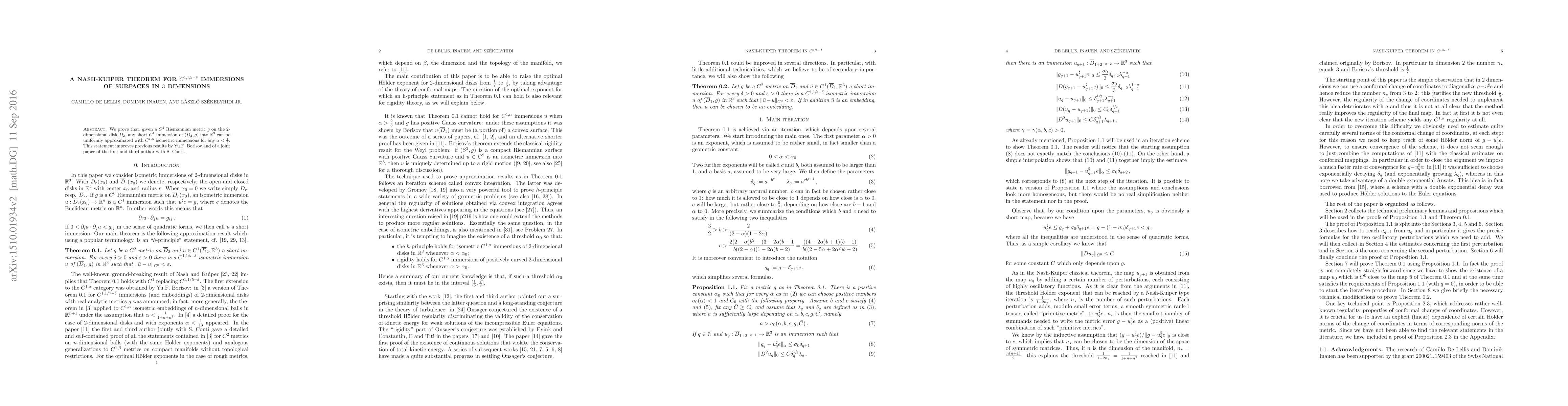 We prove that, given a $C^2$ Riemannian metric $g$ on the $2$-dimensional disk $D_2$, any short $C^1$ immersion of $(D_2,g)$ into $\mathbb R^3$ can be uniformly approximated with $C^{1,\alpha}$ isometric immersions for any $\alpha < \frac{1}{5}$. This statement improves previous results by Yu.F. Borisov and of a joint paper of the first and third author with S. Conti.
