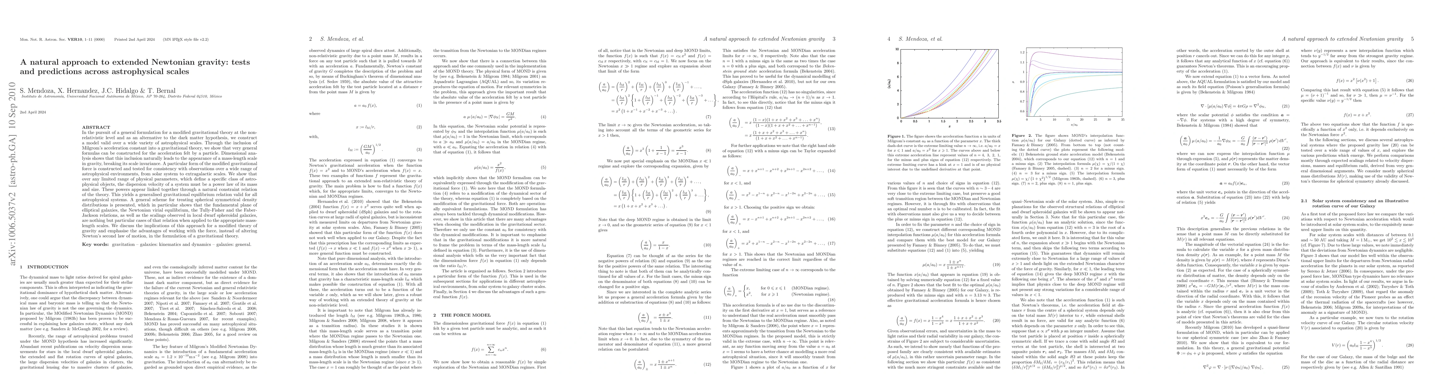 In the pursuit of a general formulation for a modified gravitational theory at the non-relativistic level and as an alternative to the dark matter hypothesis, we construct a model valid over a wide variety of astrophysical scales. Through the inclusion of Milgrom's acceleration constant into a gravitational theory, we show that very general formulas can be constructed for the acceleration felt by a particle. Dimensional analysis shows that this inclusion naturally leads to the appearance of a mass-length scale in gravity, breaking its scale invariance. A particular form of the modified gravitational force is constructed and tested for consistency with observations over a wide range of astrophysical environments, from solar system to extragalactic scales. We show that over any limited range of physical parameters, which define a specific class of astrophysical objects, the dispersion velocity of a system must be a power law of its mass and size. These powers appear linked together through a natural constraint relation of the theory. This yields a generalised gravitational equilibrium relation valid for all astrophysical systems. A general scheme for treating spherical symmetrical density distributions is presented, which in particular shows that the fundamental plane of elliptical galaxies, the Newtonian virial equilibrium, the Tully-Fisher and the Faber-Jackson relations, as well as the scalings observed in local dwarf spheroidal galaxies, are nothing but particular cases of that relation when applied to the appropriate mass-length scales. We discuss the implications of this approach for a modified theory of gravity and emphasise the advantages of working with the force, instead of altering Newton's second law of motion, in the formulation of a gravitational theory.