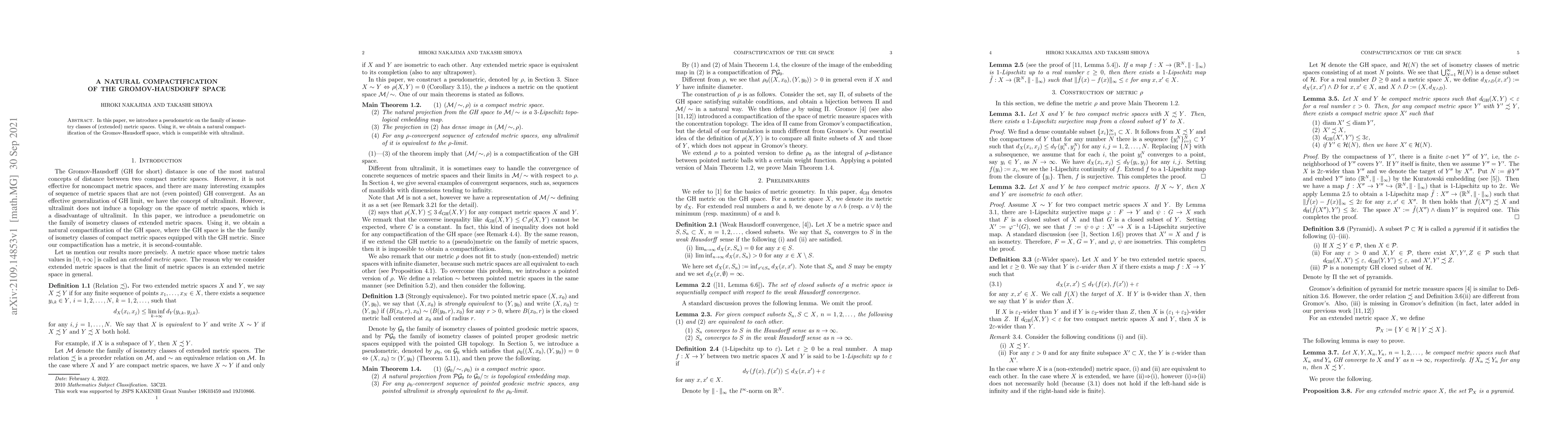 This paper introduces a pseudometric to define isometry classes of metric spaces, leading to a natural compactification of the Gromov-Hausdorff space that aligns with ultralimit compatibility.