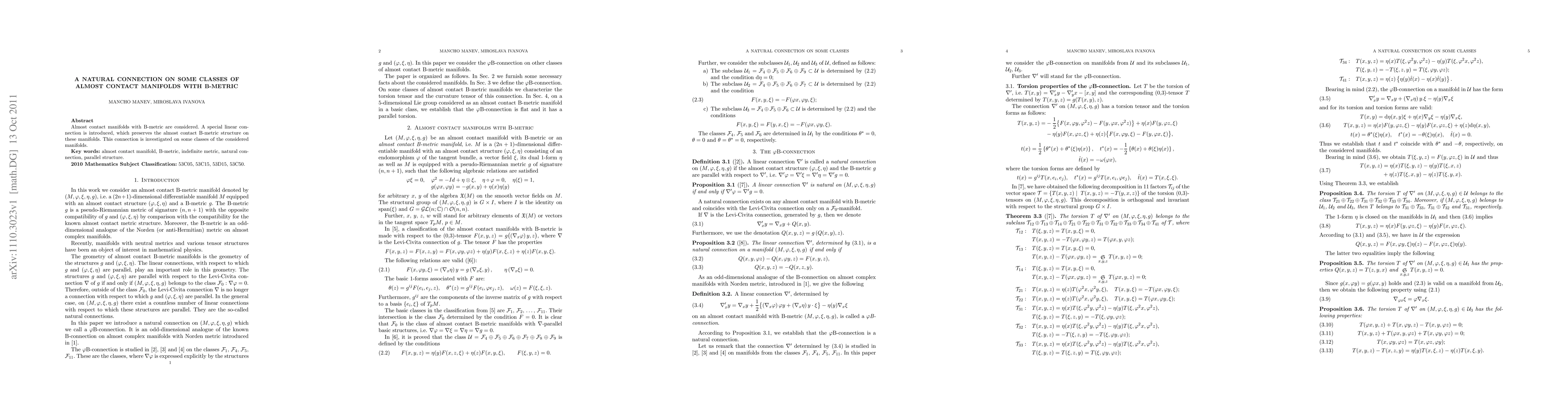 **Summary:** This paper introduces a special linear connection on almost contact manifolds equipped with B-metrics that preserves their structure. The properties and implications of this connection are explored within specific classes of these manifolds.