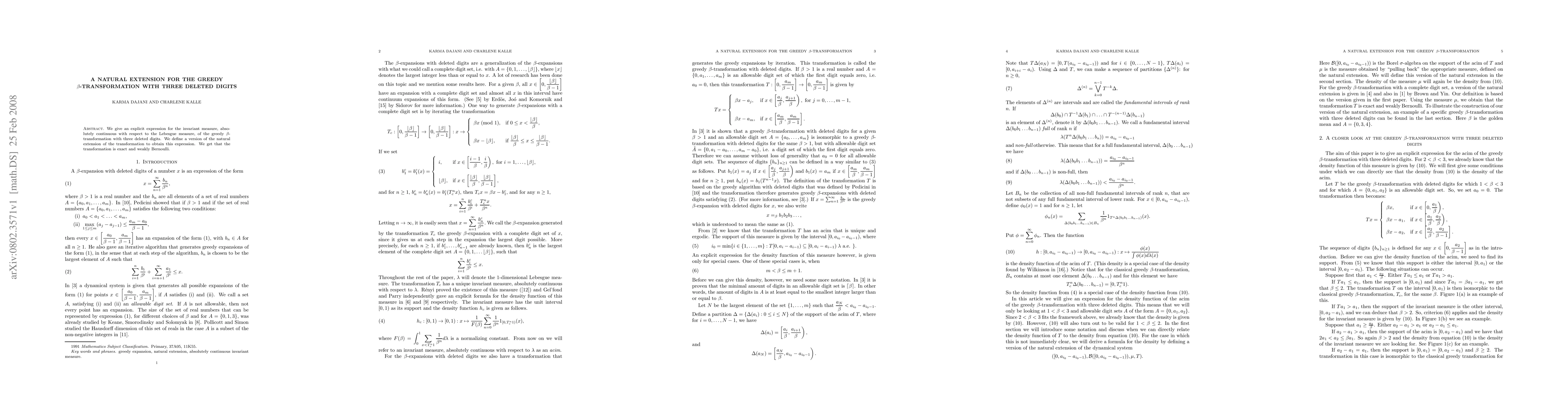 Researchers developed an explicit expression for the invariant measure of the greedy beta-transformation with three deleted digits, finding it to be exact and weakly Bernoulli.