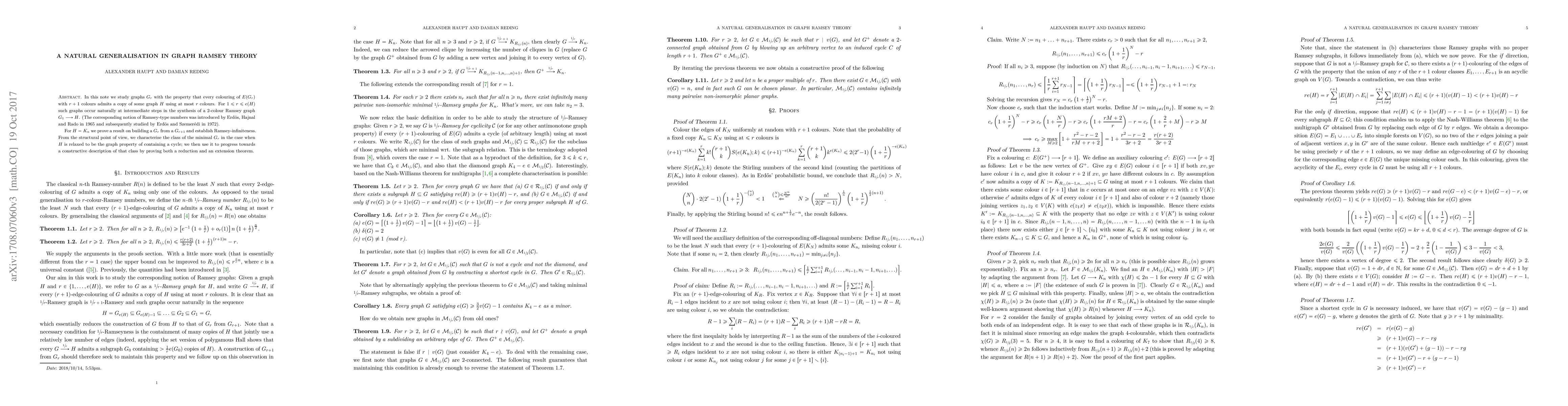 In this note we study graphs $G_r$ with the property that every colouring of $E(G_r)$ with $r+1$ colours admits a copy of some graph $H$ using at most $r$ colours. For $1\le r\le e(H)$ such graphs occur naturally at intermediate steps in the synthesis of a $2$-colour Ramsey graph $G_1\longrightarrow H$. (The corresponding notion of Ramsey-type numbers was introduced by Erd\"os, Hajnal and Rado in 1965 and subsequently studied by Erd\"os and Szemer\'edi in 1972). For $H=K_n$ we prove a result on building a $G_{r}$ from a $G_{r+1}$ and establish Ramsey-infiniteness. From the structural point of view, we characterise the class of the minimal $G_r$ in the case when $H$ is relaxed to be the graph property of containing a cycle; we then use it to progress towards a constructive description of that class by proving both a reduction and an extension theorem.