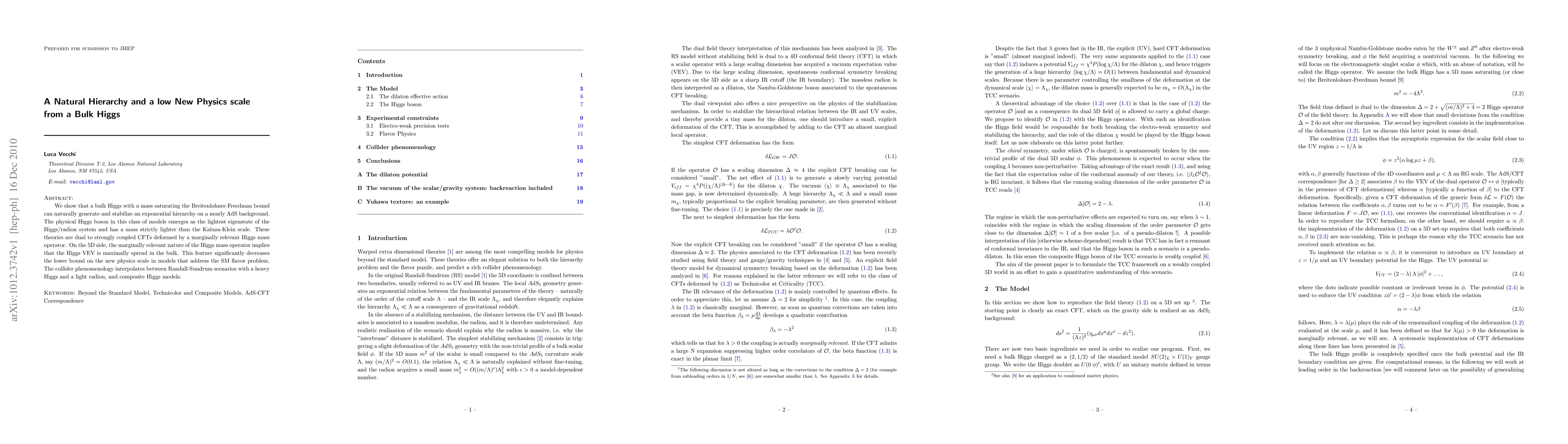 We show that a bulk Higgs with a mass saturating the Breitenlohner-Freedman bound can naturally generate and stabilize an exponential hierarchy on a nearly AdS background. The physical Higgs boson in this class of models emerges as the lightest eigenstate of the Higgs/radion system and has a mass strictly lighter than the Kaluza-Klein scale. These theories are dual to strongly coupled CFTs deformed by a marginally relevant Higgs mass operator. On the 5D side, the marginally relevant nature of the Higgs mass operator implies that the Higgs VEV is maximally spread in the bulk. This feature significantly decreases the lower bound on the new physics scale in models that address the SM flavor problem. The collider phenomenology interpolates between Randall-Sundrum scenarios with a heavy Higgs and a light radion, and composite Higgs models.