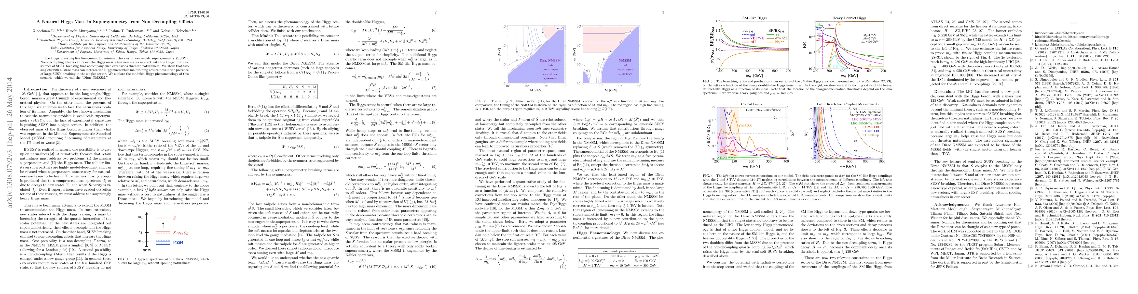 The Higgs mass implies fine-tuning for minimal theories of weak scale supersymmetry (SUSY). Non-decoupling effects can boost the Higgs mass when new states interact with the Higgs, but new sources of SUSY breaking that accompany such extensions threaten naturalness. We show that two singlets with a Dirac mass can increase the Higgs mass while maintaining naturalness in the presence of large SUSY breaking in the singlet sector. We explore the modified Higgs phenomenology of this scenario, which we call the "Dirac NMSSM."