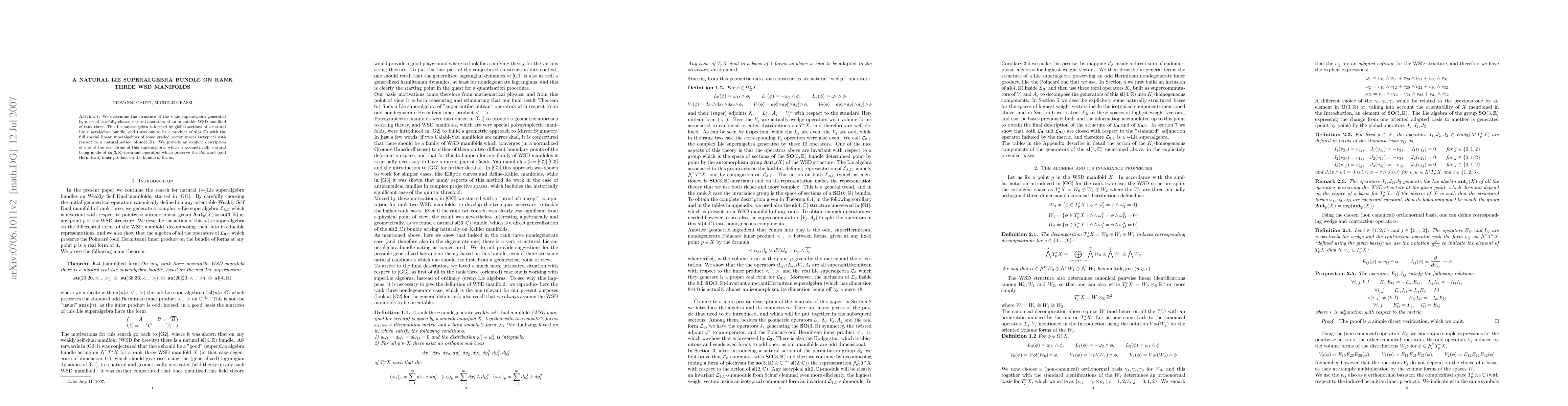 We determine the structure of the $*$-Lie superalgebra generated by a set of carefully chosen natural operators of an orientable WSD manifold of rank three. This Lie superalgebra is formed by global sections of a natural Lie superalgebra bundle, and turns out to be a product of $\mathbf{sl}(4,\C)$ with the full special linear superalgebras of some graded vector spaces isotypical with respect to a natural action of $\mathbf{so}(3,\R)$. We provide an explicit description of one of the real forms of this superalgebra, which is geometrically natural being made of $\mathbf{so}(3,\R)$-invariant operators which preserve the Poincar\'e (odd Hermitean) inner product on the bundle of forms.