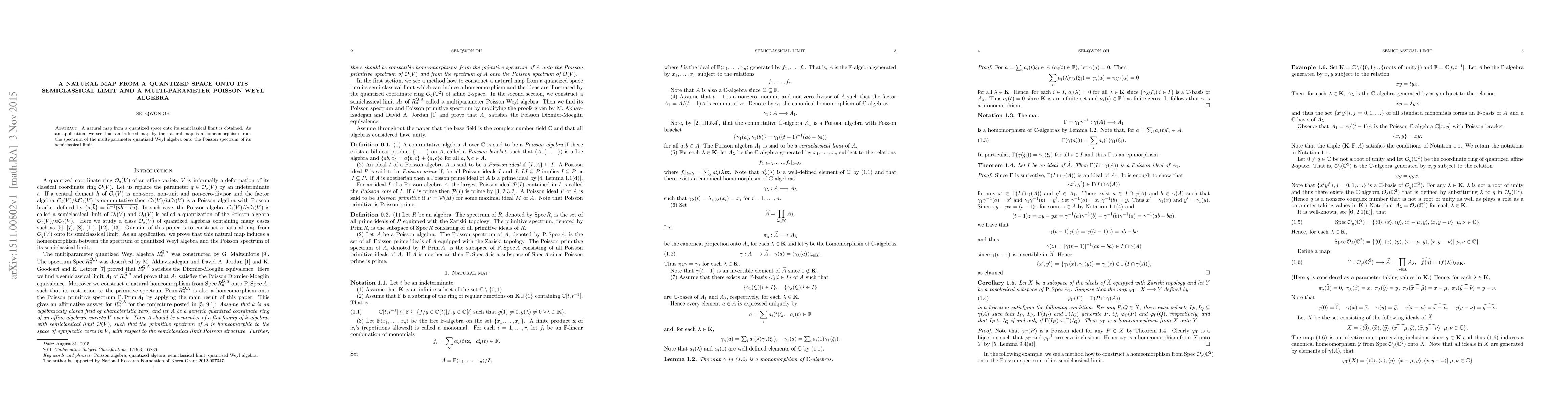 Summary: This paper constructs a natural map from a quantized space to its semiclassical limit and demonstrates that this map induces a homeomorphism between the spectrum of the multi-parameter quantized Weyl algebra and the Poisson spectrum of its semiclassical counterpart.