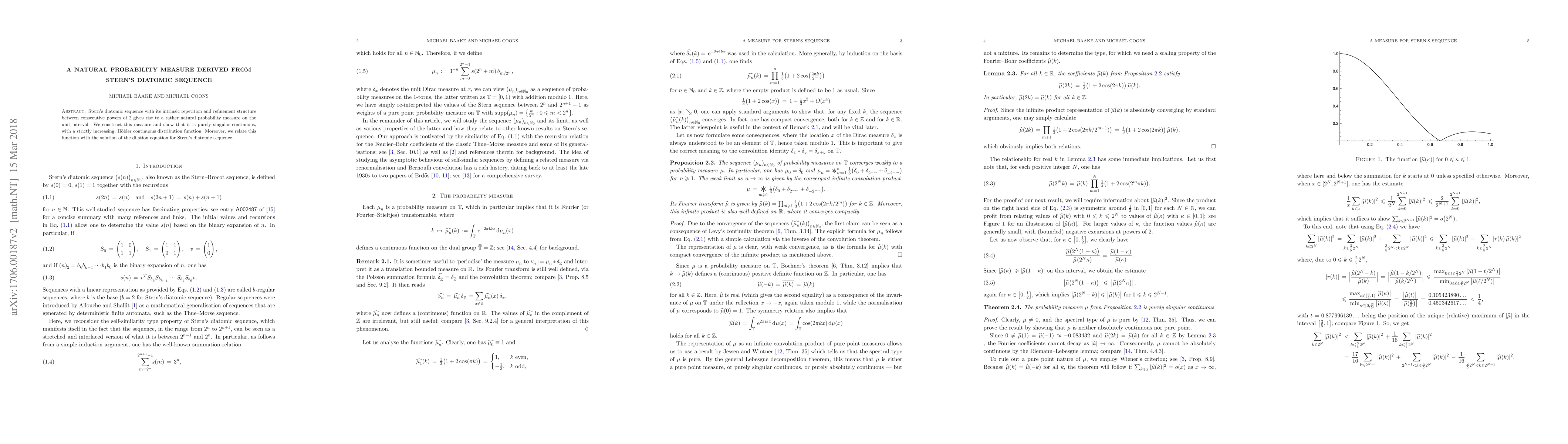 This paper constructs a probability measure from Stern's diatomic sequence, demonstrating it to be purely singular continuous with a strictly increasing, Hölder continuous distribution function, and connects this function to the solution of the dilation equation for the sequence.