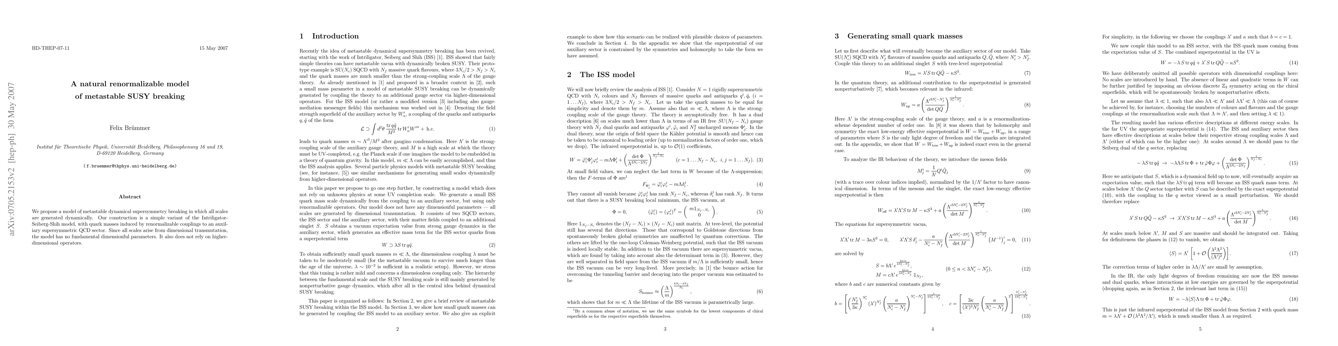 We propose a model of metastable dynamical supersymmetry breaking in which all scales are generated dynamically. Our construction is a simple variant of the Intriligator-Seiberg-Shih model, with quark masses induced by renormalizable couplings to an auxiliary supersymmetric QCD sector. Since all scales arise from dimensional transmutation, the model has no fundamental dimensionful parameters. It also does not rely on higher-dimensional operators.