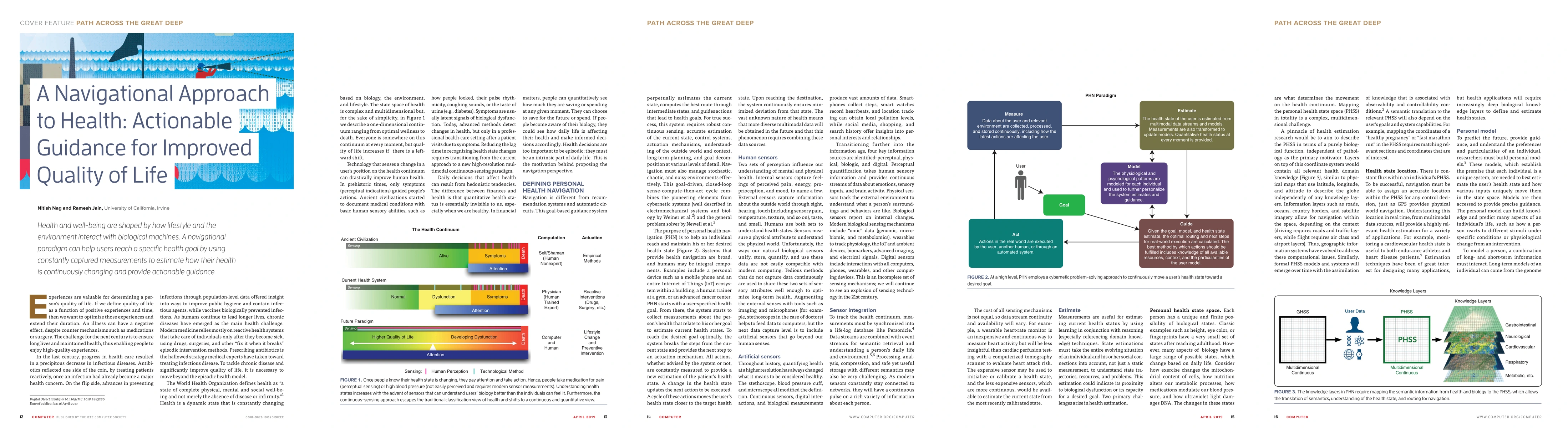 This paper proposes a navigational framework for personal health management, emphasizing continuous, multi-modal monitoring to guide individuals towards their health goals. It advocates for a perpetual cycle of measurement, estimation, and actionable guidance to maintain optimal health and prevent disease.